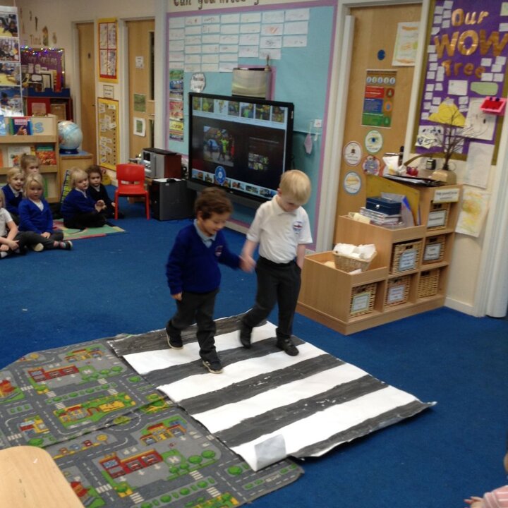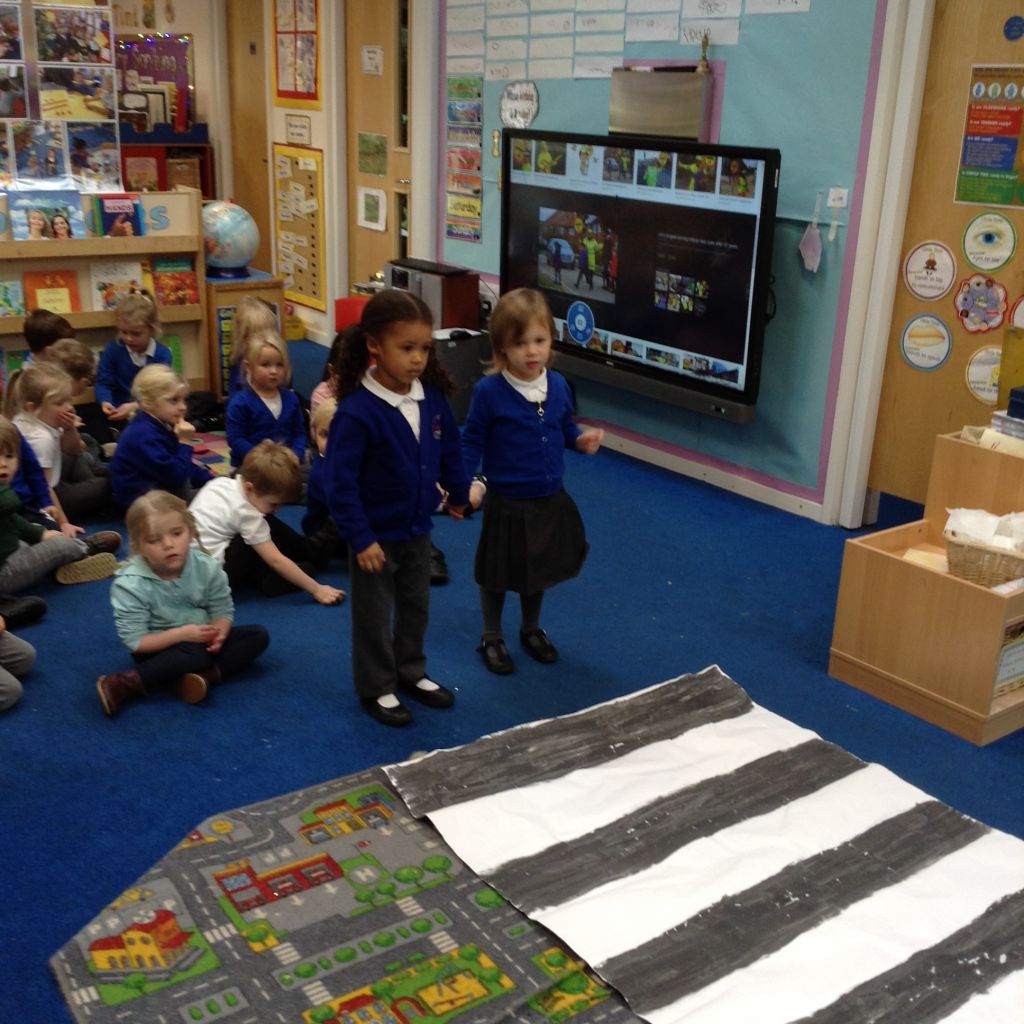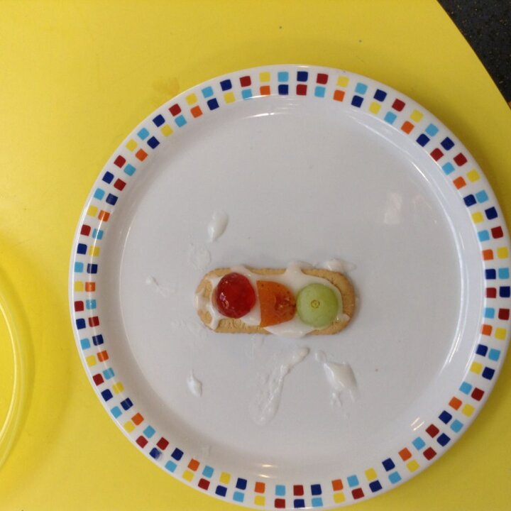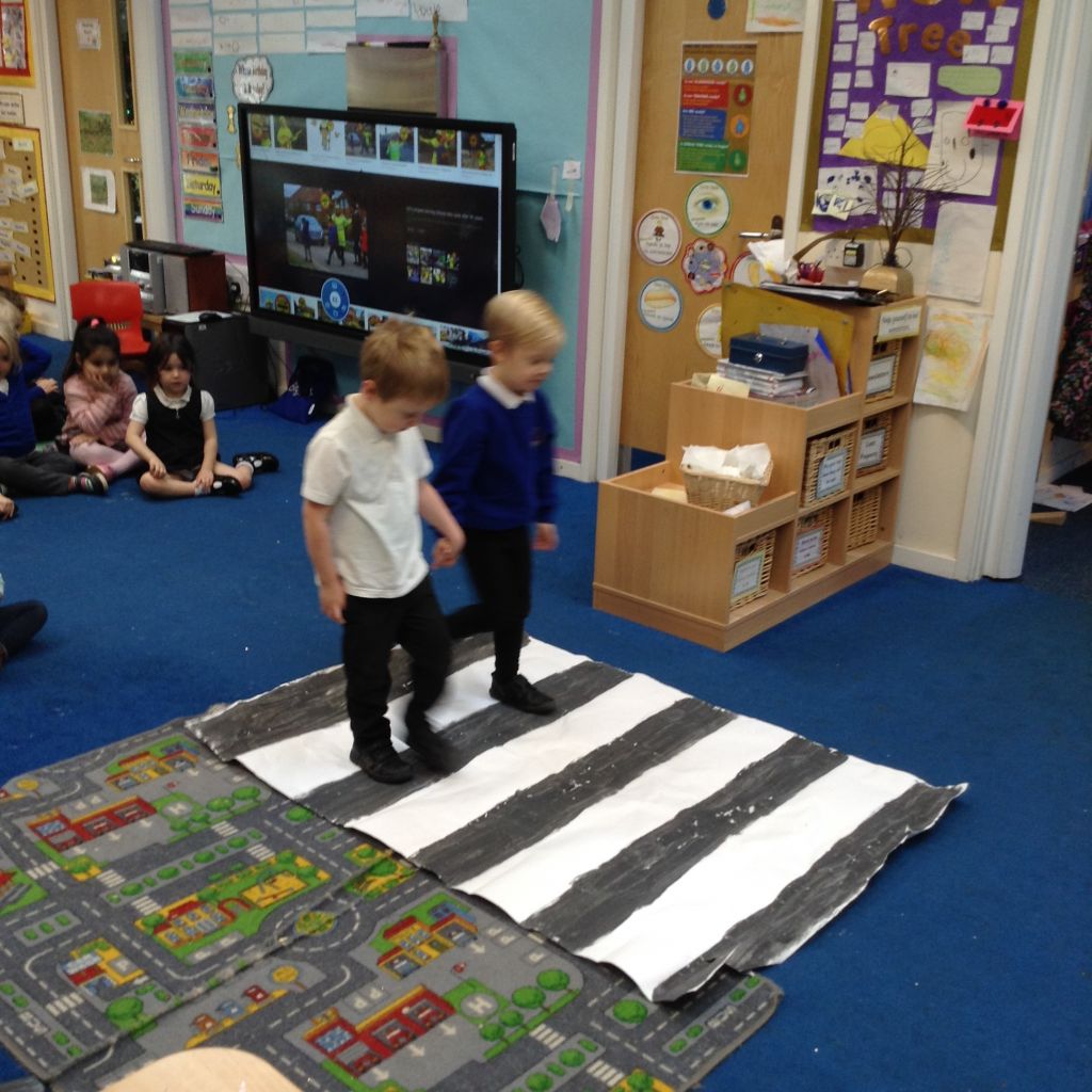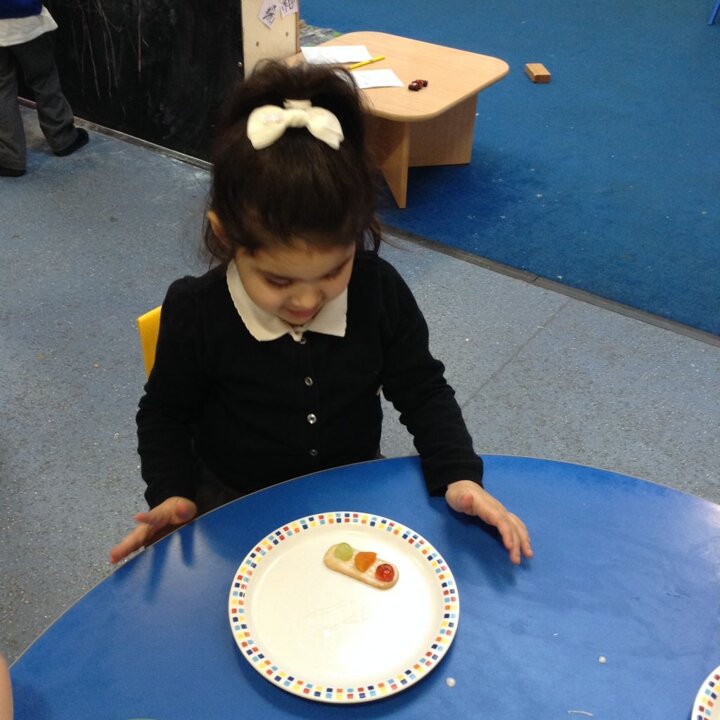 Fitting in nicely with our topic of People Who Help us, Nursery have been learning about who can help us to cross a road during our road safety week this week. The children have learned all about the job of “lolly pop ladies and lolly pop men.” They have also learned about other things that are available to help us to cross a busy road to keep ourselves safe – zebra crossings, pelican crossings, subways and bridges. The children have learned about the green cross code and know that they must find a safe place to cross, stop, look and listen, hold a grown ups hand and walk across the road. They have been practicing in the classroom with our zebra crossing mat. The children have also learned about traffic lights and what the different colours mean. They made traffic light biscuits using cherries, apricots and grapes to represent the coloured lights. They had to remember to put them in the correct order on the biscuit.
