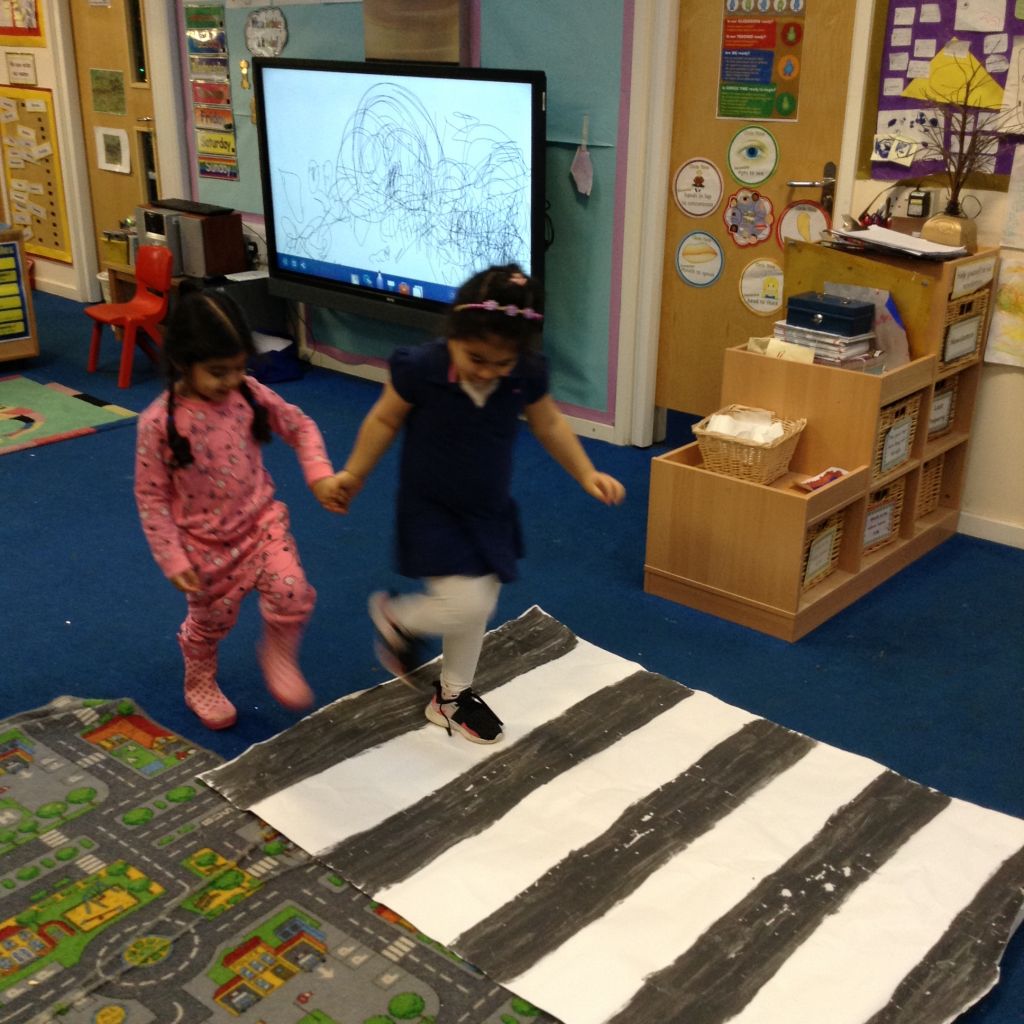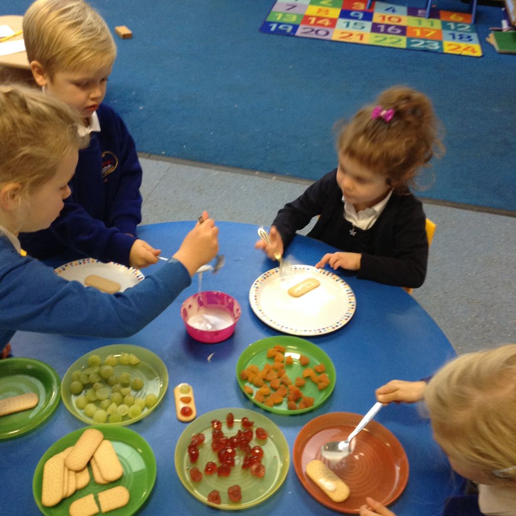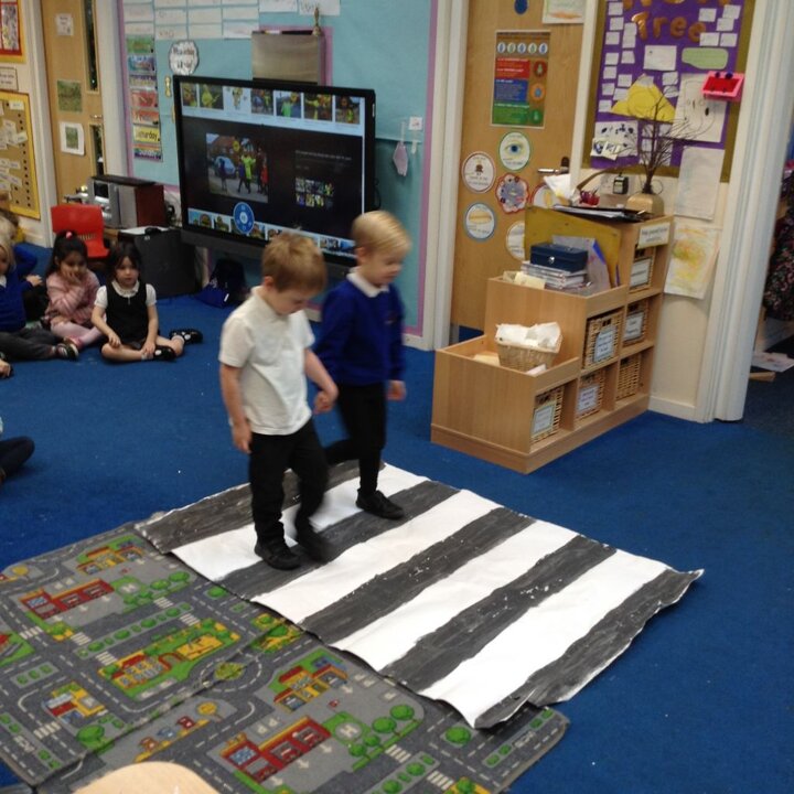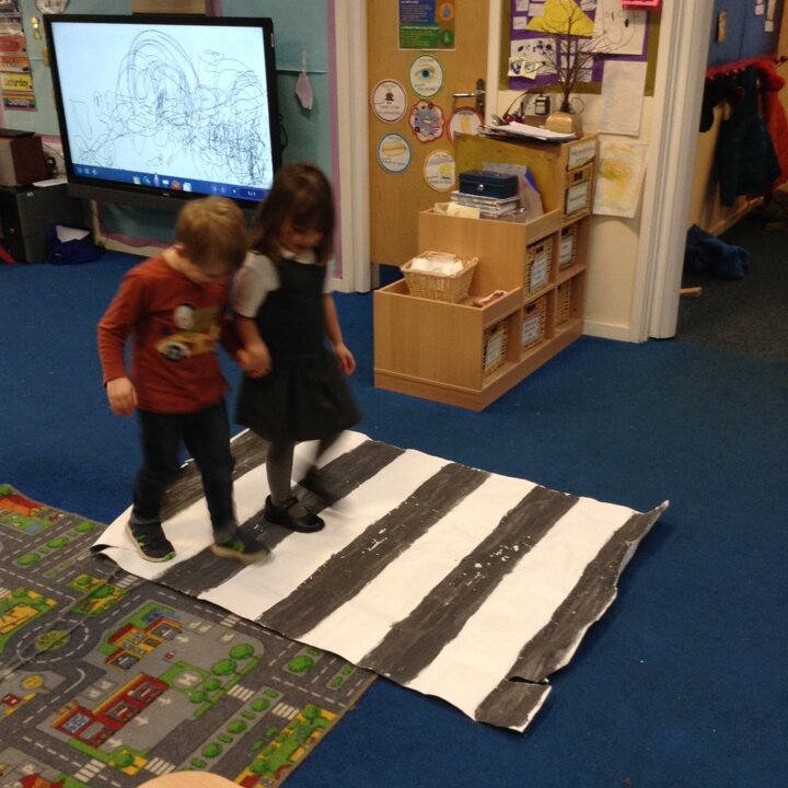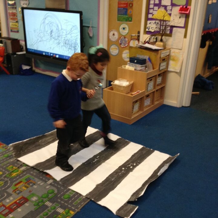 Fitting in nicely with our topic of People Who Help us, Nursery have been learning about who can help us to cross a road during our road safety week this week. The children have learned all about the job of “lolly pop ladies and lolly pop men.” They have also learned about other things that are available to help us to cross a busy road to keep ourselves safe – zebra crossings, pelican crossings, subways and bridges. The children have learned about the green cross code and know that they must find a safe place to cross, stop, look and listen, hold a grown ups hand and walk across the road. They have been practicing in the classroom with our zebra crossing mat. The children have also learned about traffic lights and what the different colours mean. They made traffic light biscuits using cherries, apricots and grapes to represent the coloured lights. They had to remember to put them in the correct order on the biscuit.