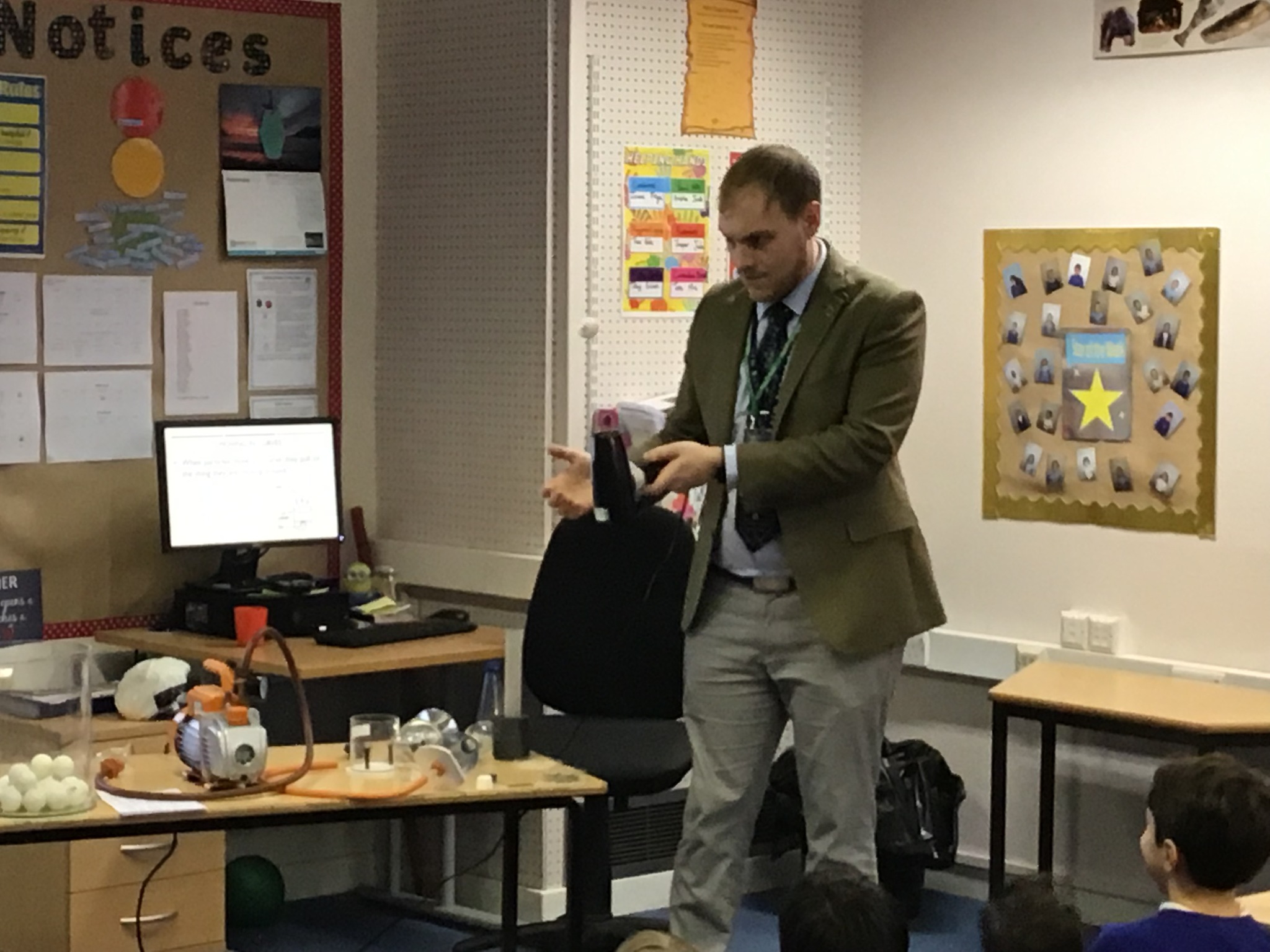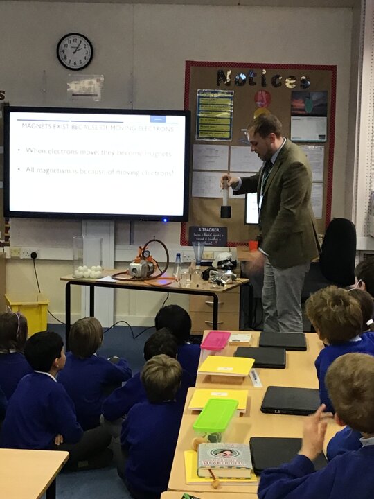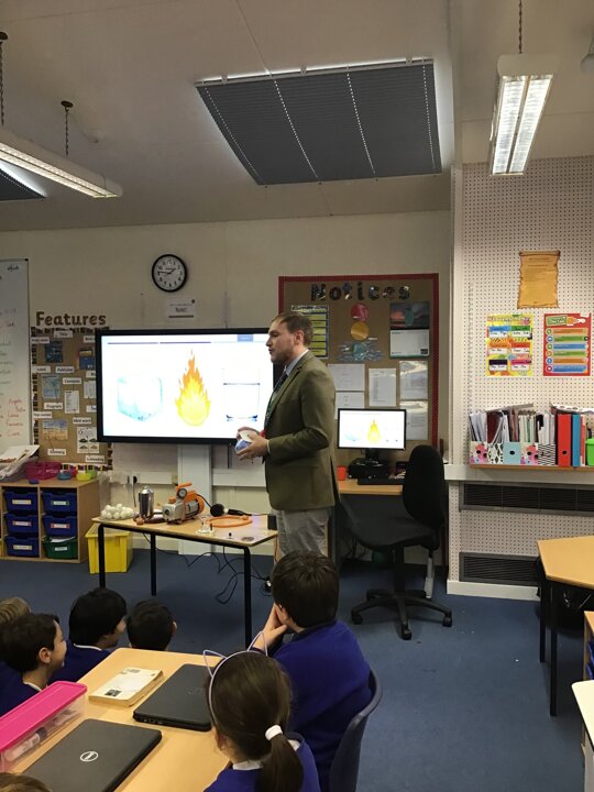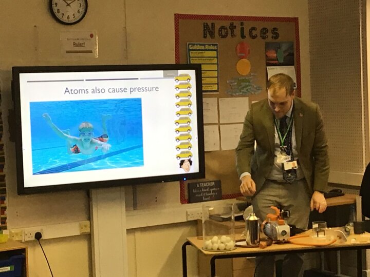 Dr Craig - a physics teacher from Yarm Grammar School - paid a visit to Year 5 today and demonstrated some very cool phenomena linked to particles. Children discovered that there are billions and billions of atoms making up each and every object, they had the chance to see the effects of pressure on a marshmallow and they even witnessed a ping-pong ball floating in the air due to the air currents from a hair dryer underneath! It truly was an eye-opening afternoon!