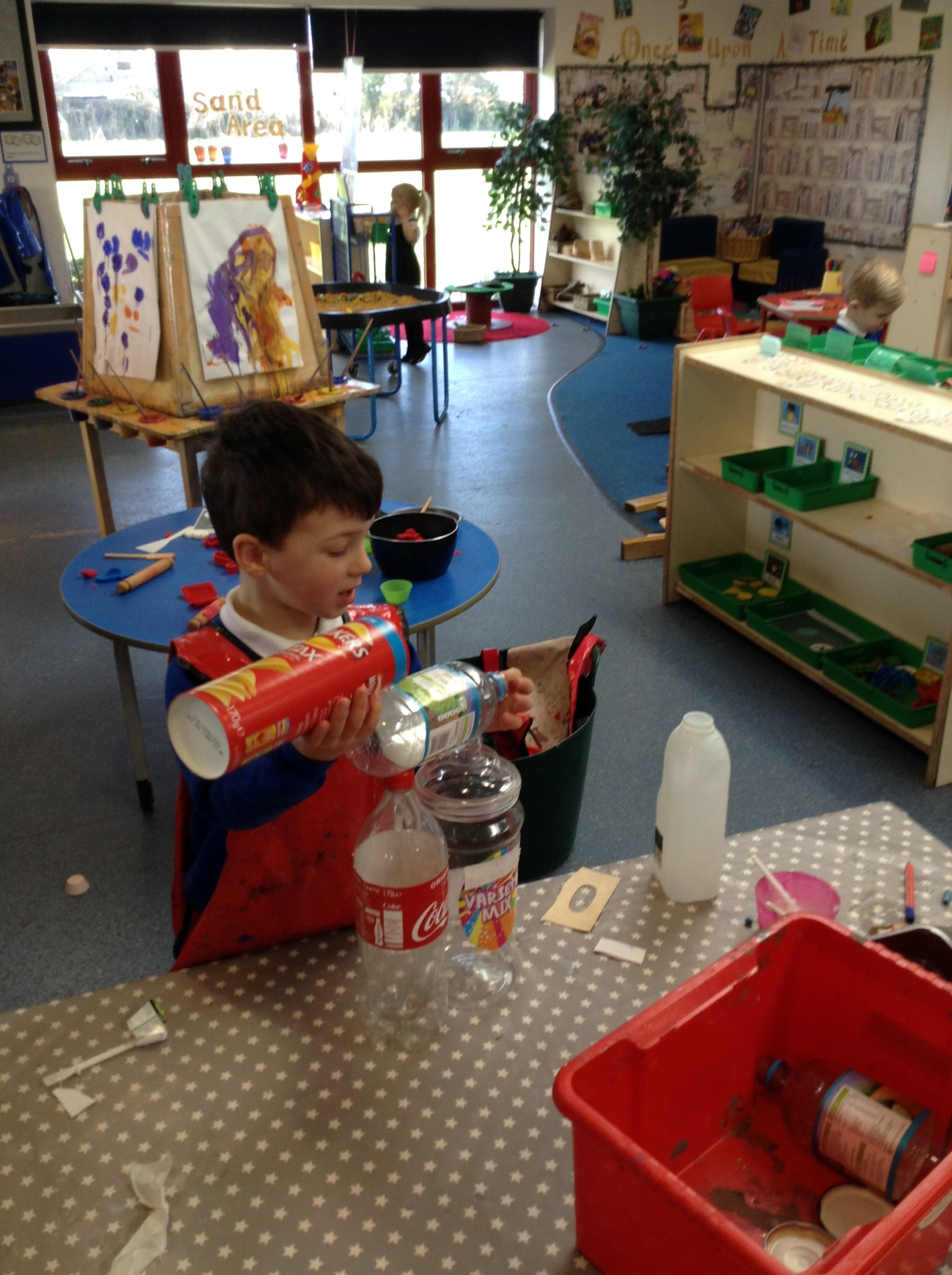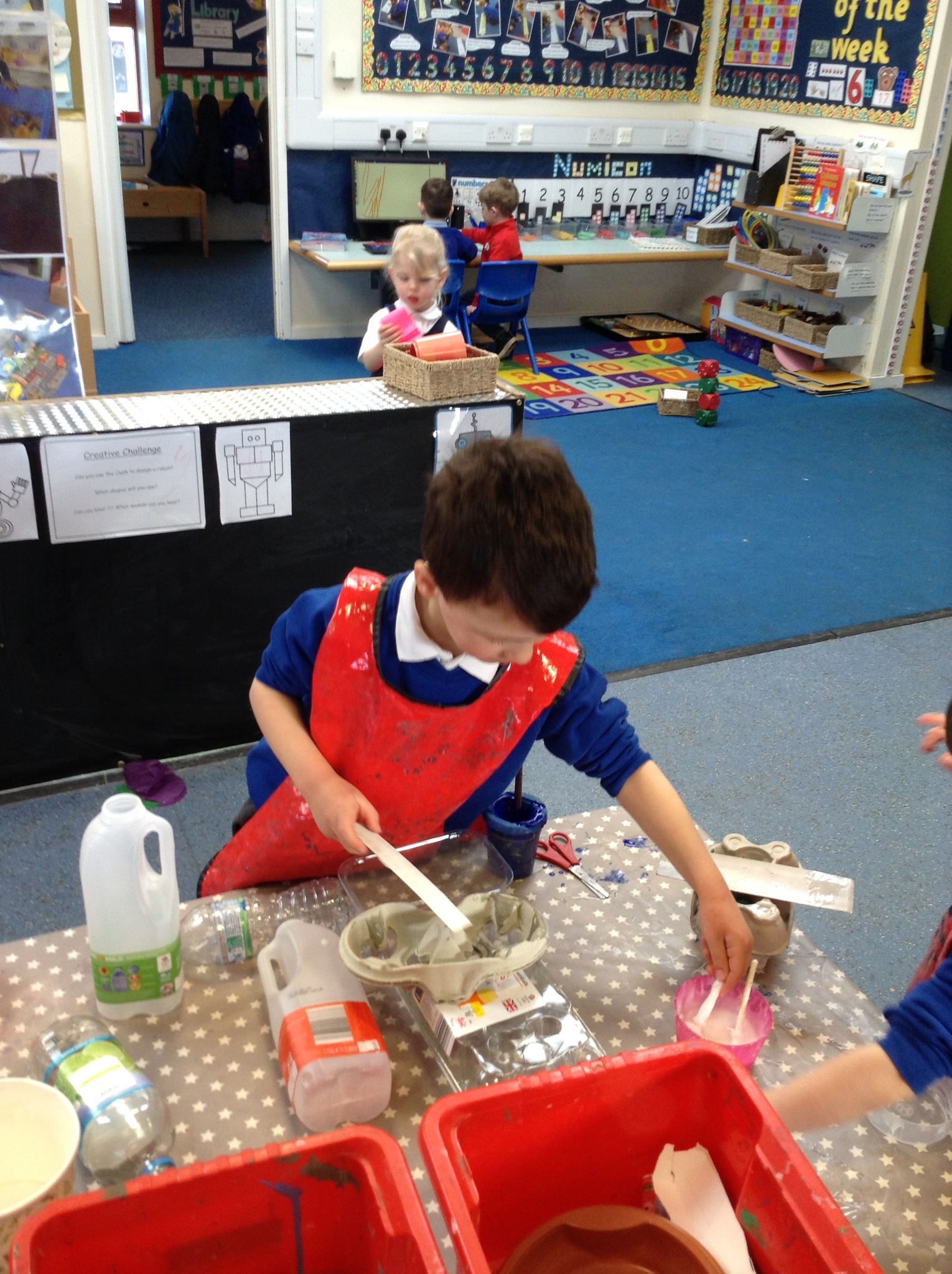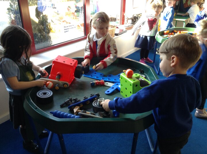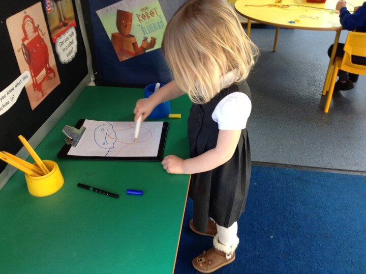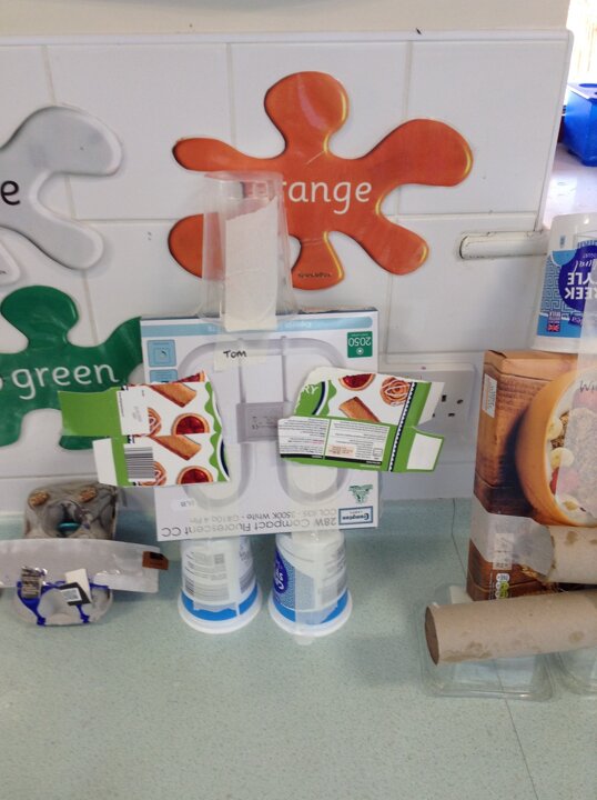 This week Nursery have been making their own robots from junk material. They have been thinking about shape and size selecting boxes and materials appropriately. We have also opened our new role play area too which is a 'Machine Workshop' where they have been inventors inventing lots of interesting machines! They have been learning about famous inventors such as 'The Wright brothers' who invented the aeroplane, Alexander Graham Bell who invented the telephone and Henry Ford who invented the motor car!