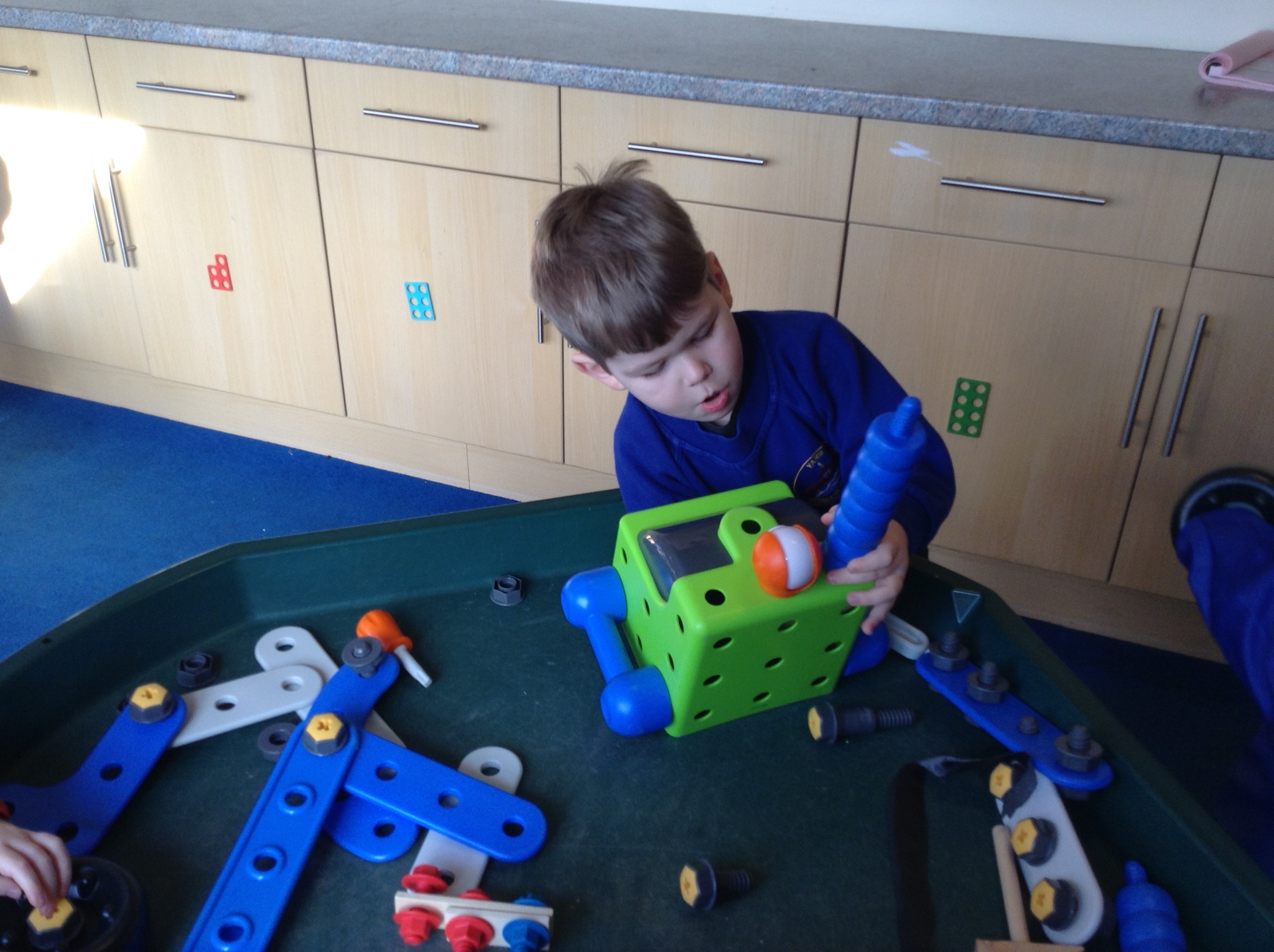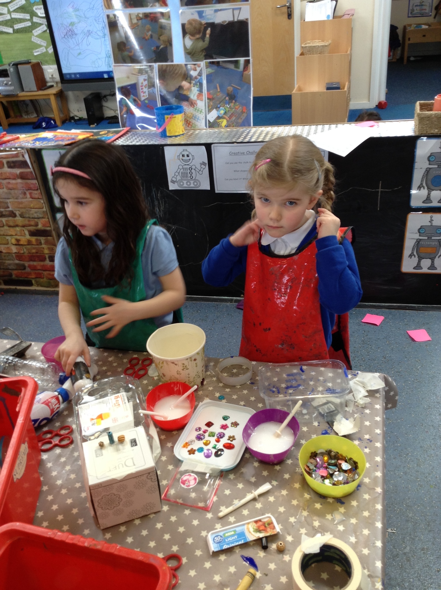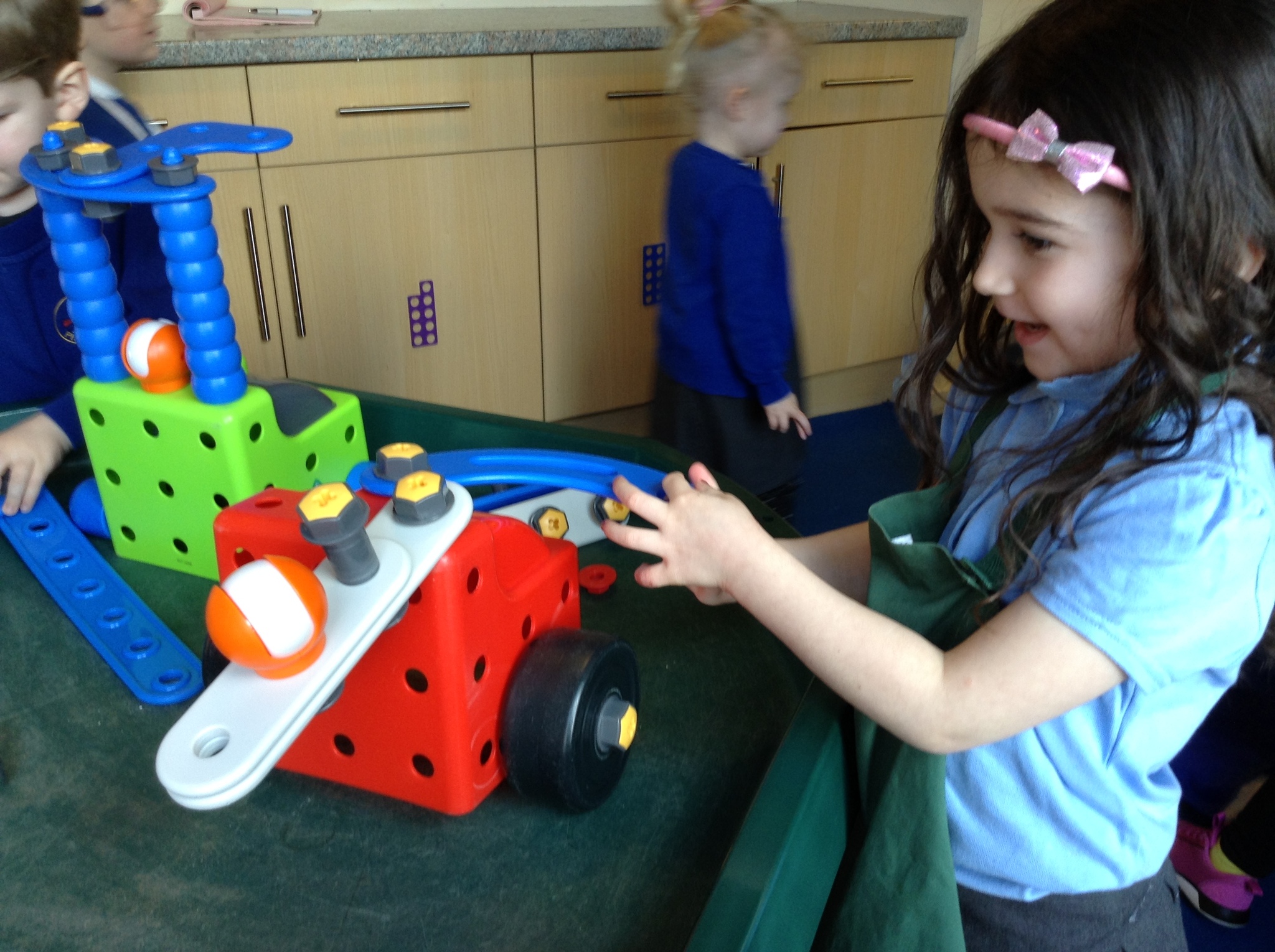 This week Nursery have been making their own robots from junk material. They have been thinking about shape and size selecting boxes and materials appropriately. We have also opened our new role play area too which is a 'Machine Workshop' where they have been inventors inventing lots of interesting machines! They have been learning about famous inventors such as 'The Wright brothers' who invented the aeroplane, Alexander Graham Bell who invented the telephone and Henry Ford who invented the motor car!