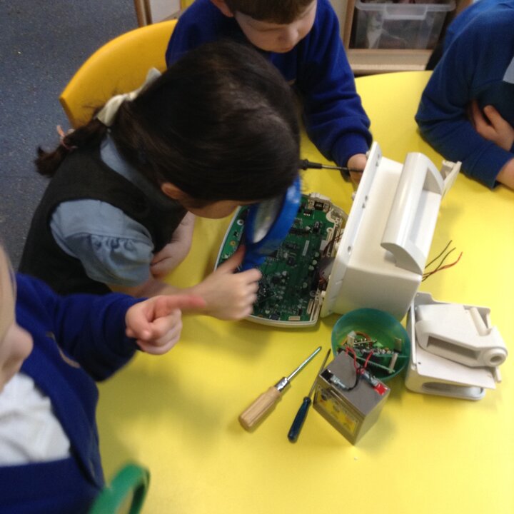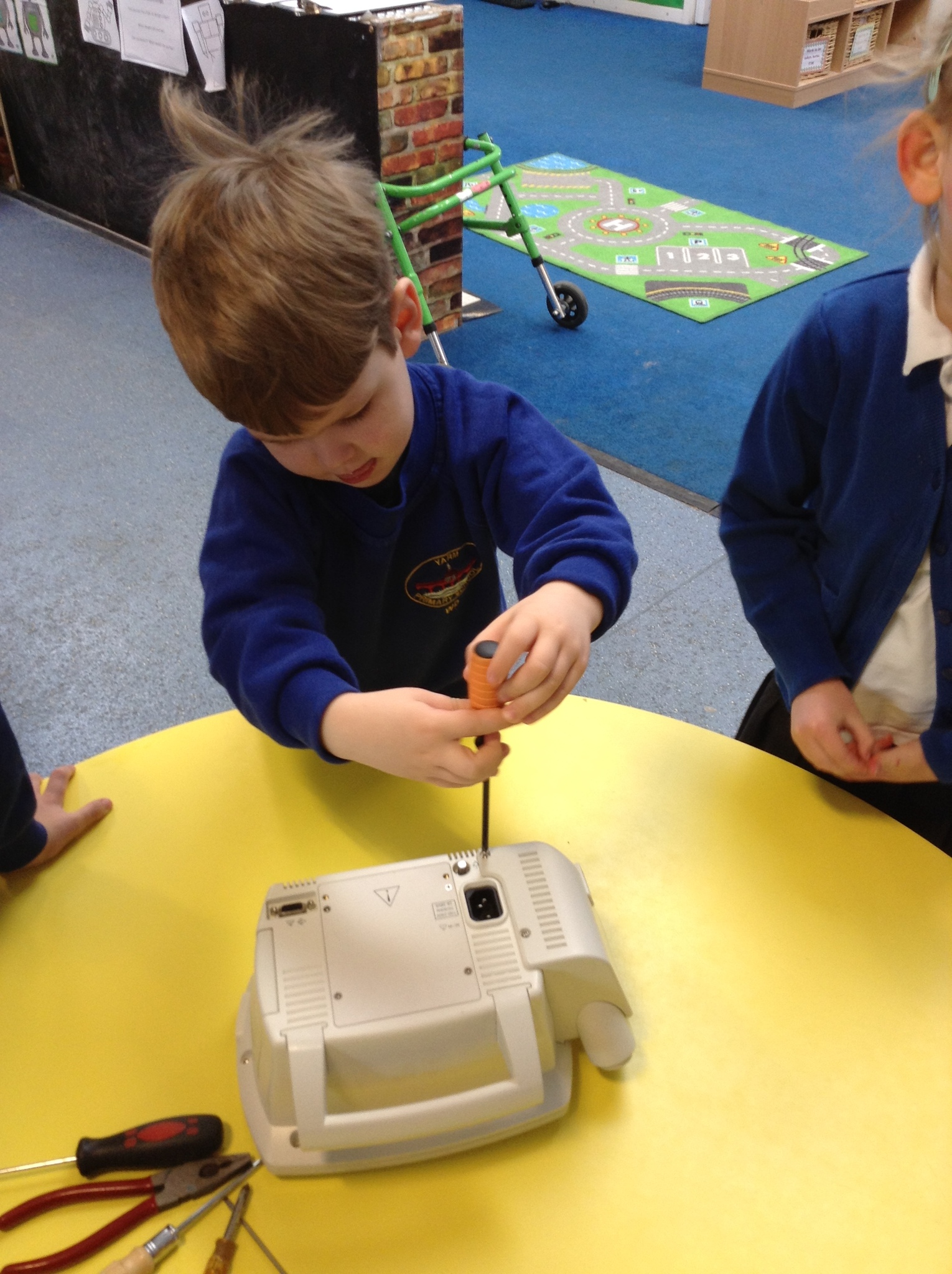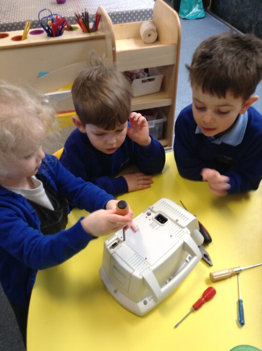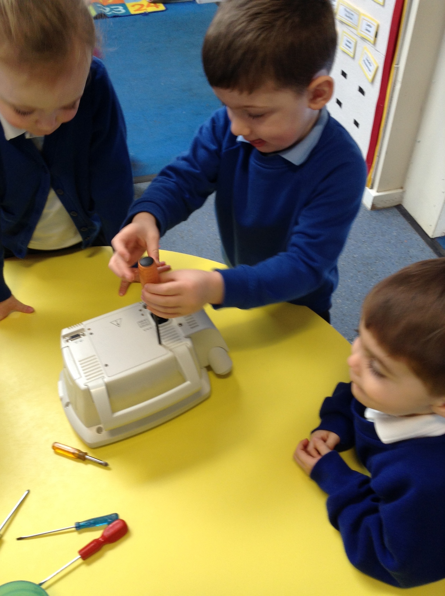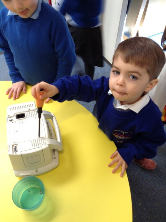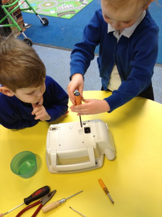 The children have also been using tools such as screwdrivers to take apart old machines to find out what was inside and how they work. The children found this fascinating!!