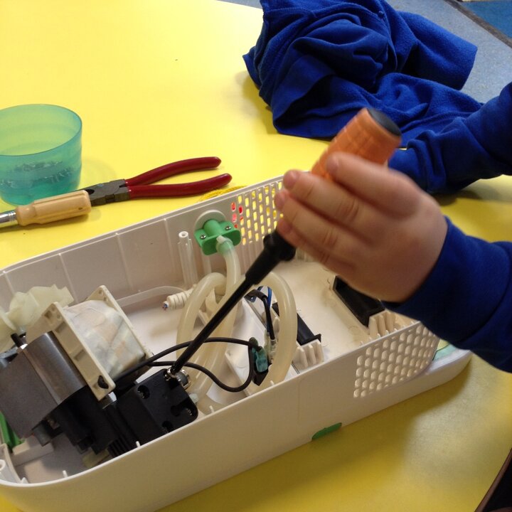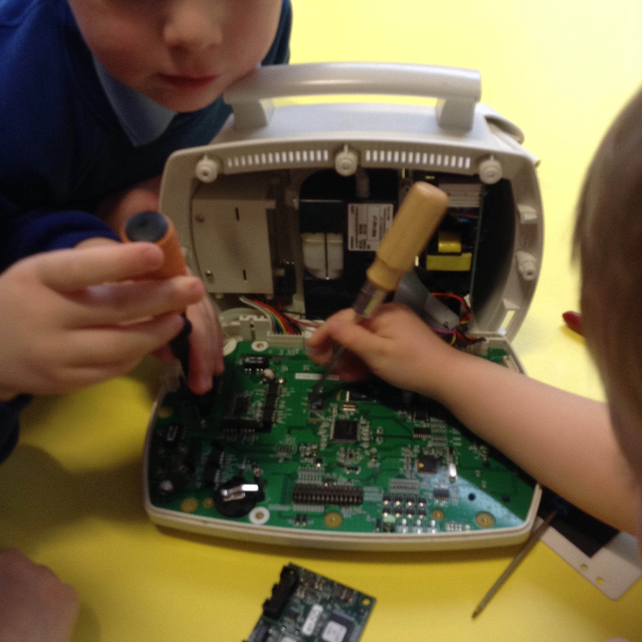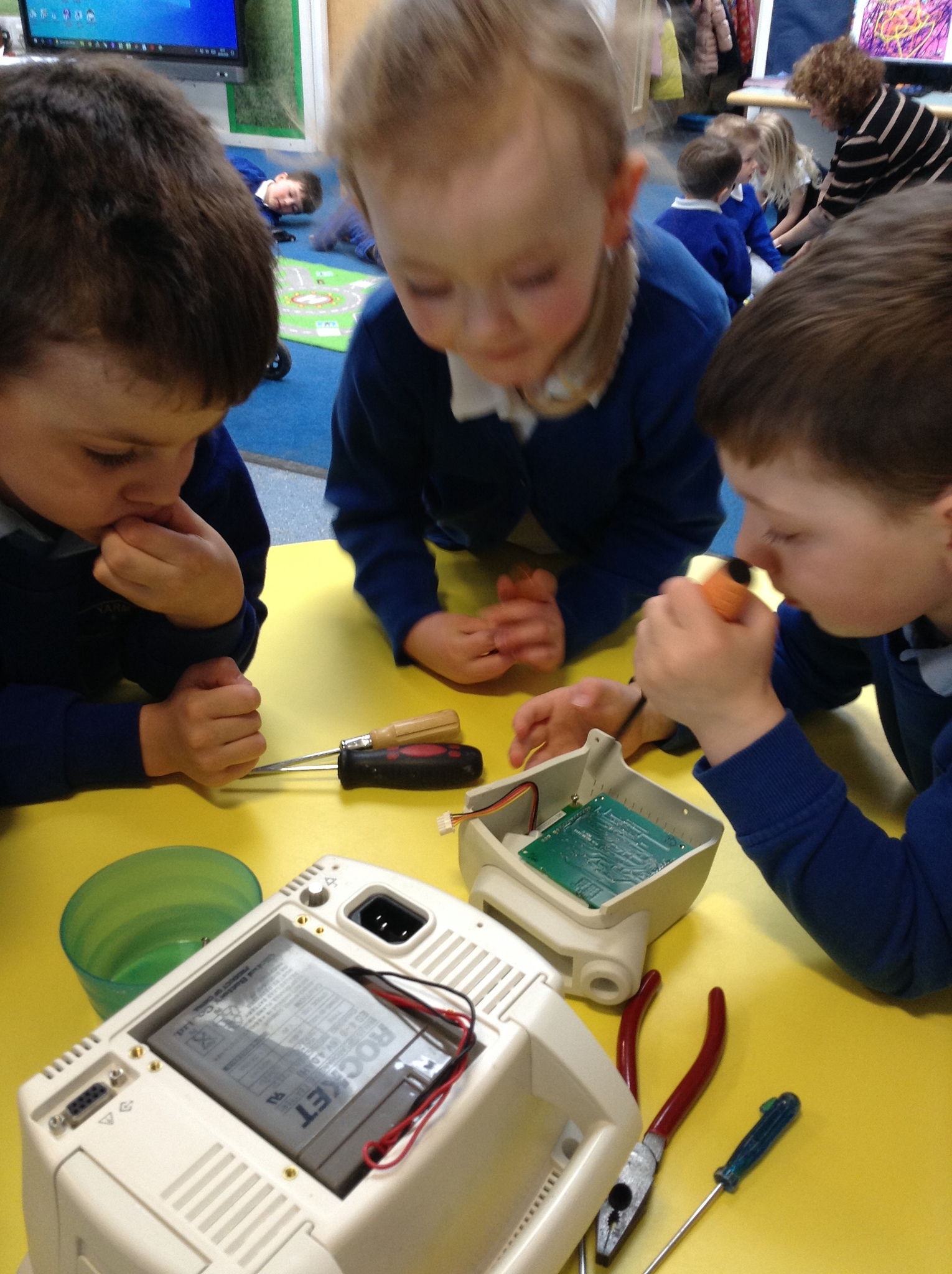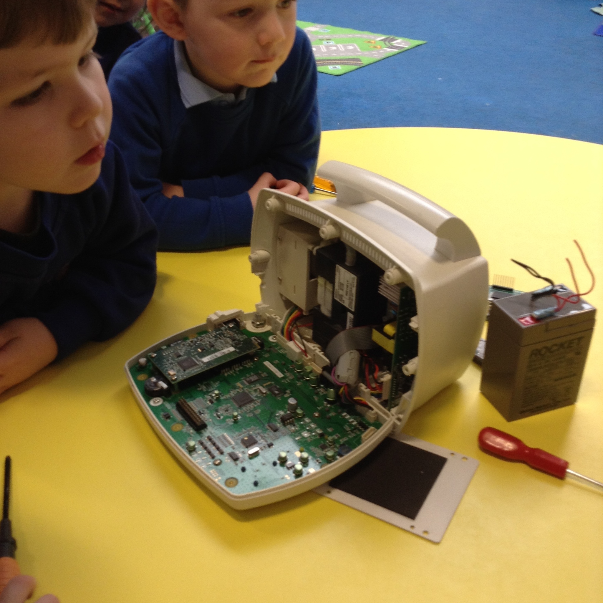 The children have also been using tools such as screwdrivers to take apart old machines to find out what was inside and how they work. The children found this fascinating!!