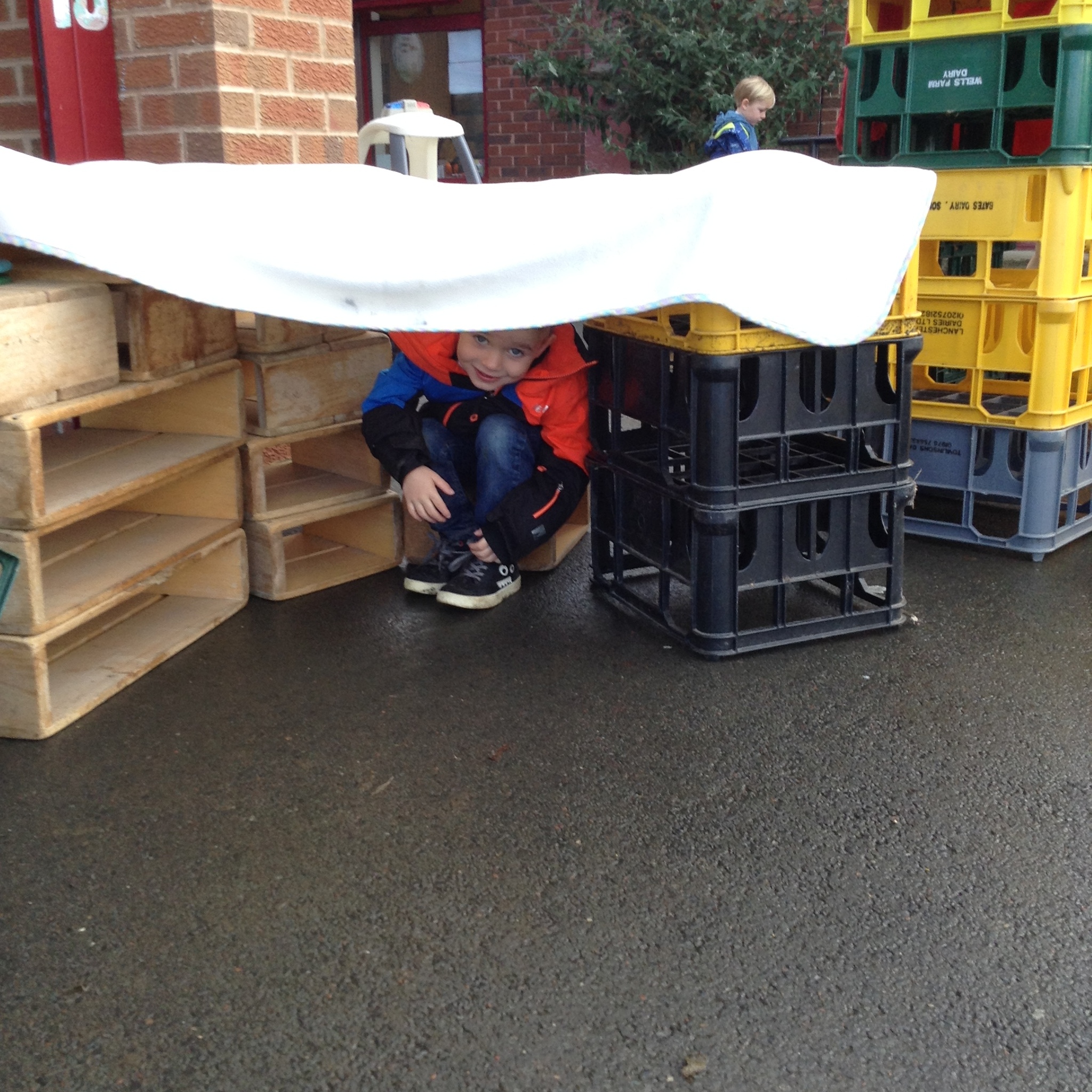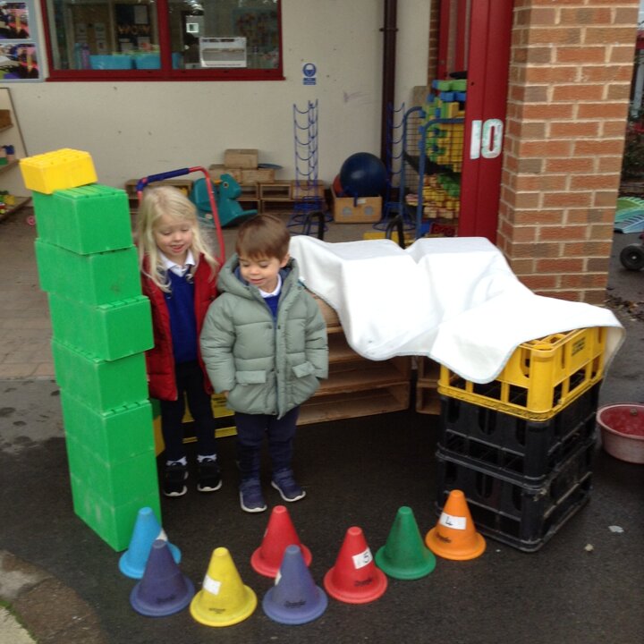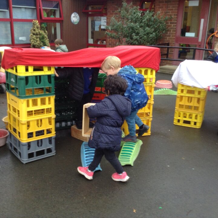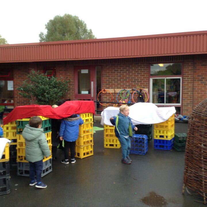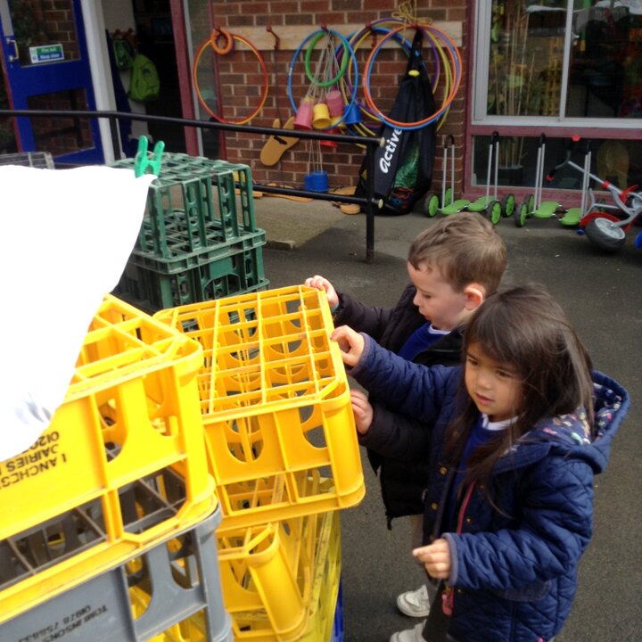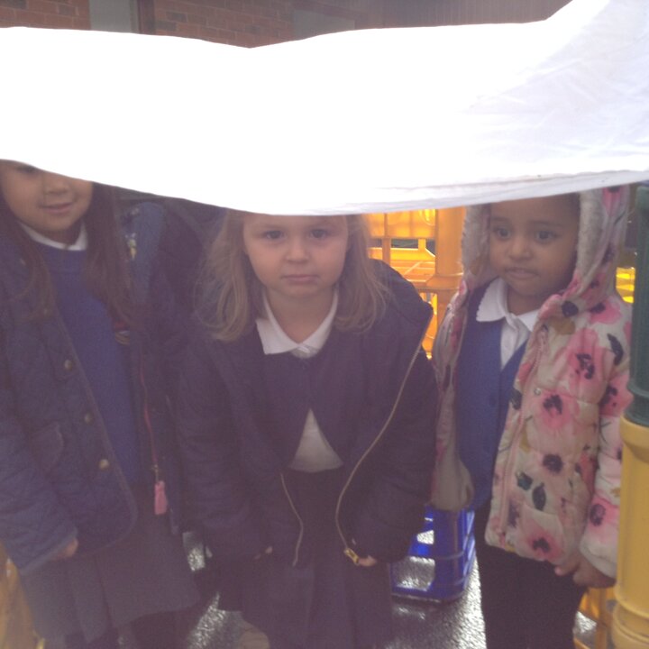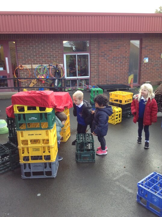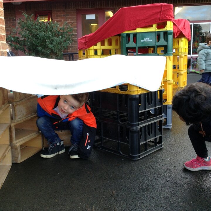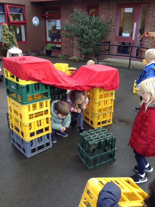 Nursery have had fun building dens today. We learnt about which animals live in a den eg fox, bear, lion etc and looked up on the internet about what they use to build them with. We then thought about the materials that we could use to build a den for us. The children were very creative and made some super dens which they had fun with!