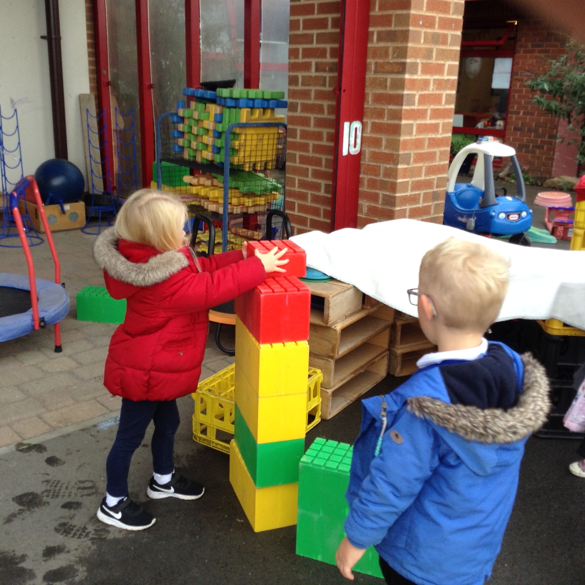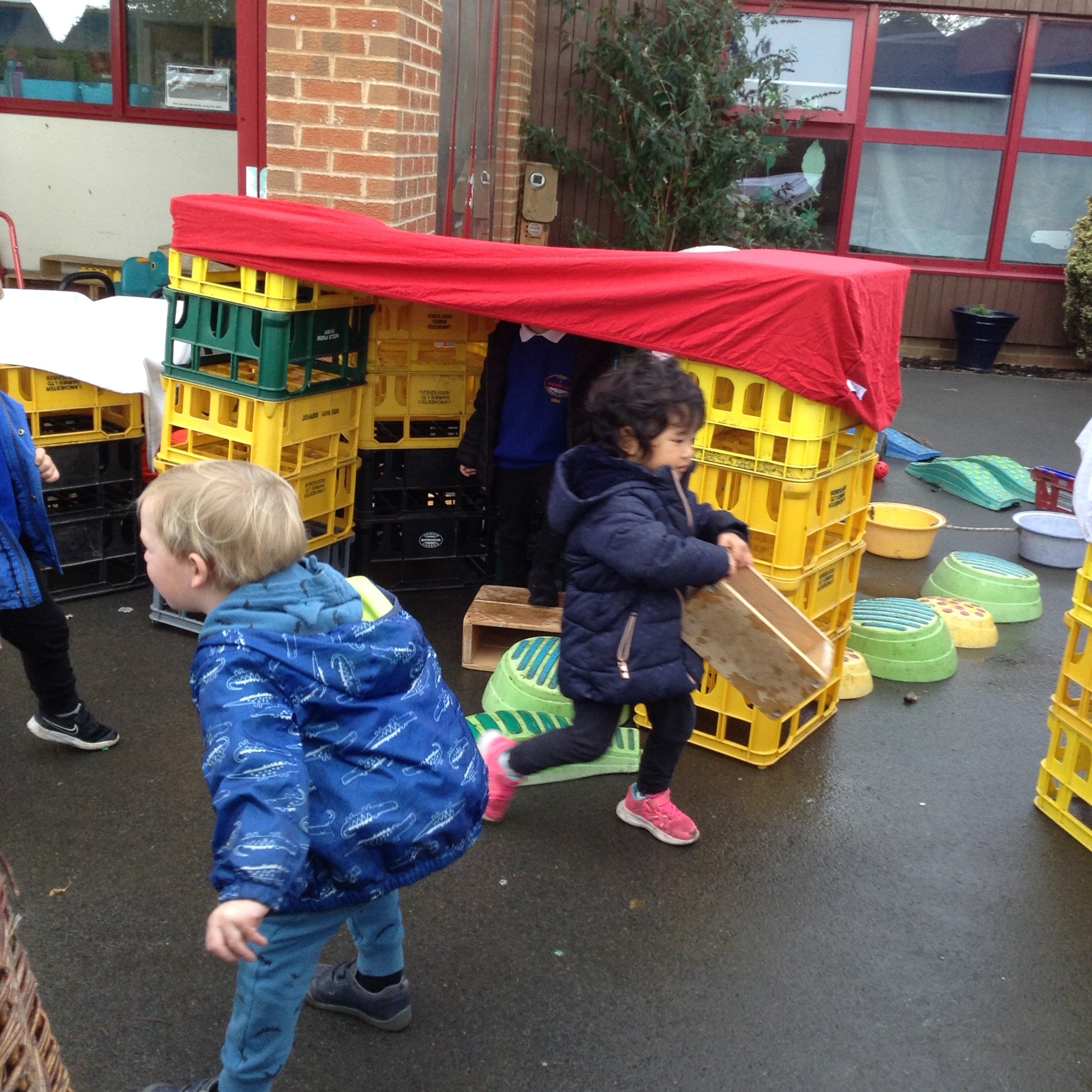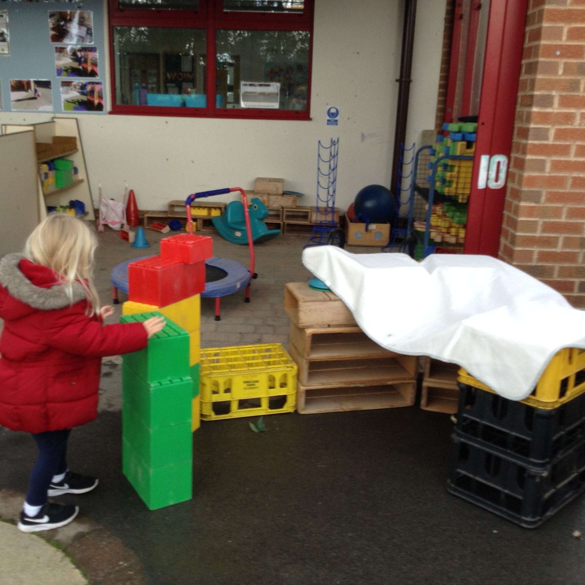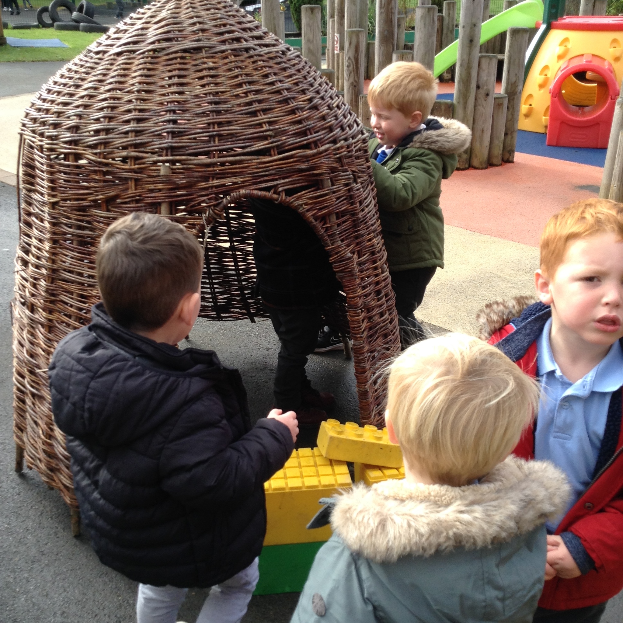 Nursery have had fun building dens today. We learnt about which animals live in a den eg fox, bear, lion etc and looked up on the internet about what they use to build them with. We then thought about the materials that we could use to build a den for us. The children were very creative and made some super dens which they had fun with!