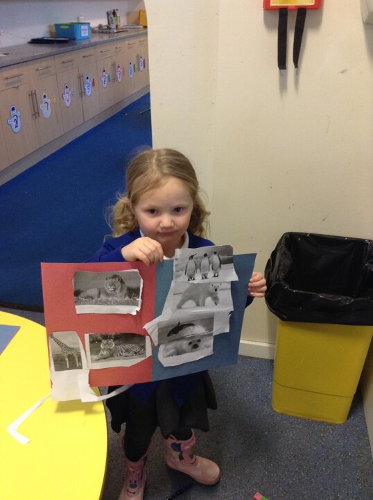 This week the children are learning about where different animals live in the world and why. They practiced their cutting skills whilst cutting out different animals and sorting them into 2 groups - those that live in cold countries and those that live in hot countries. They also learnt about how some animals are adapted to live in different climates. For eg Polar Bears have fur on the bottom of their feet to help to keep their feet warm and to stop them slipping on the ice!