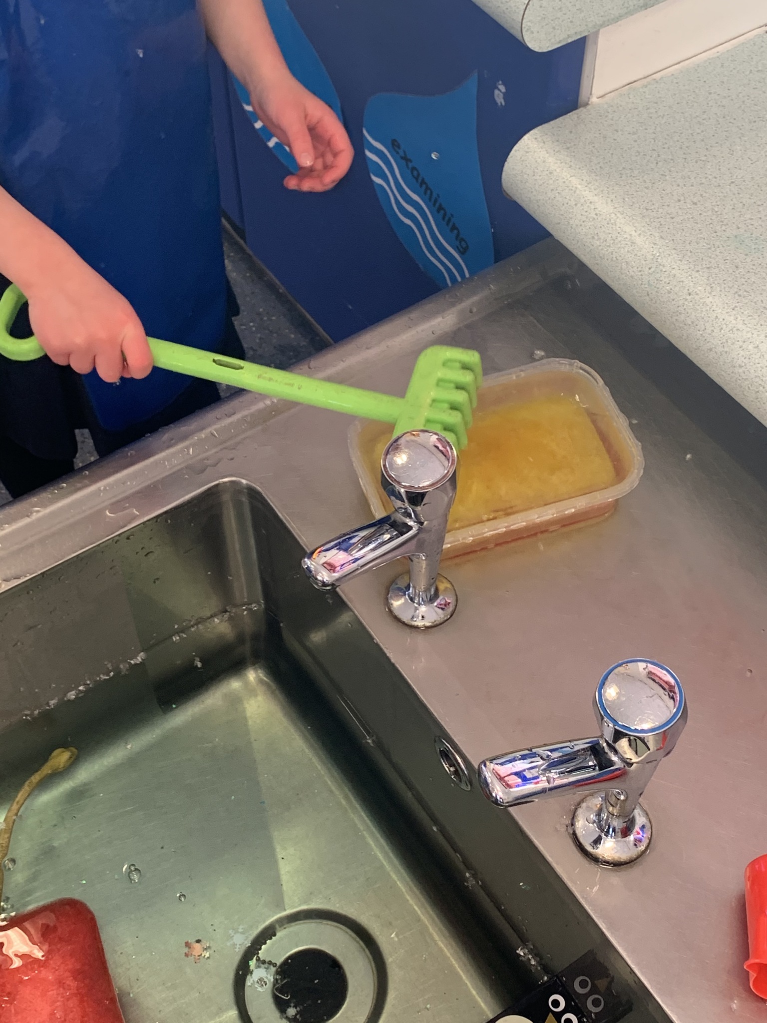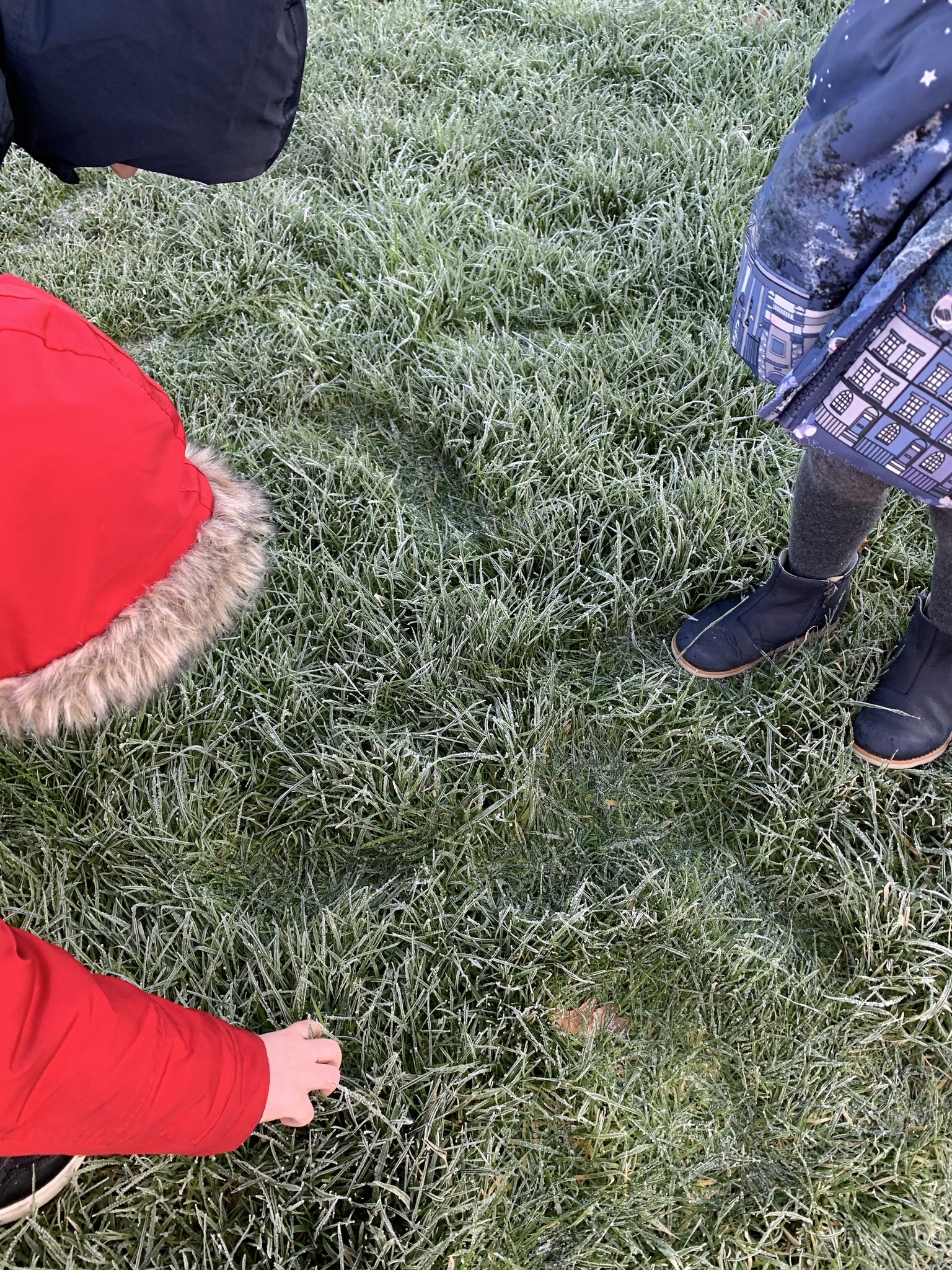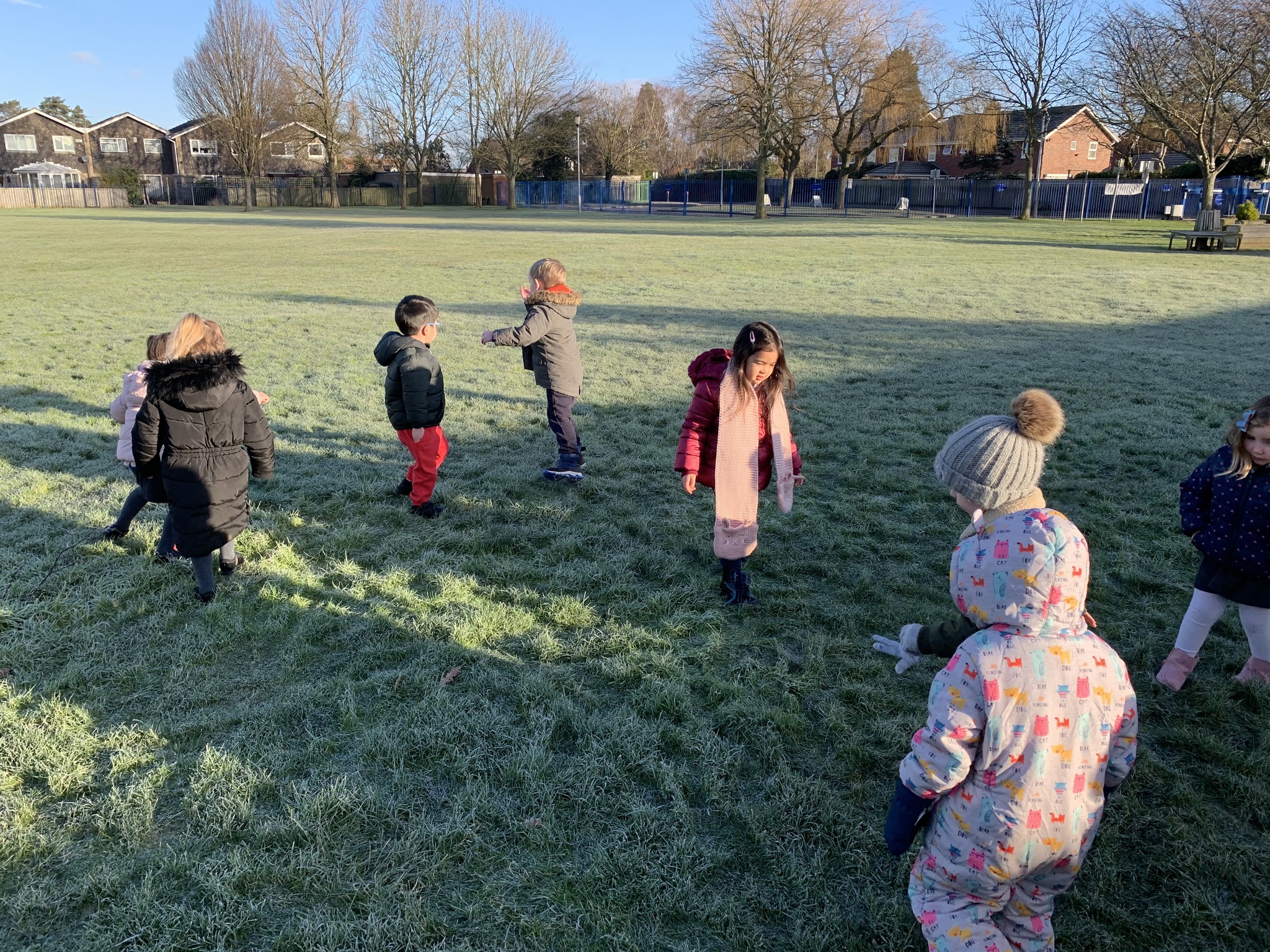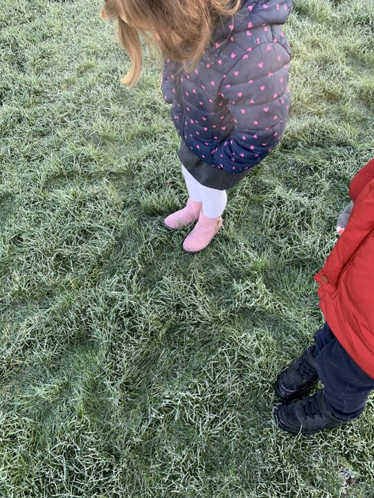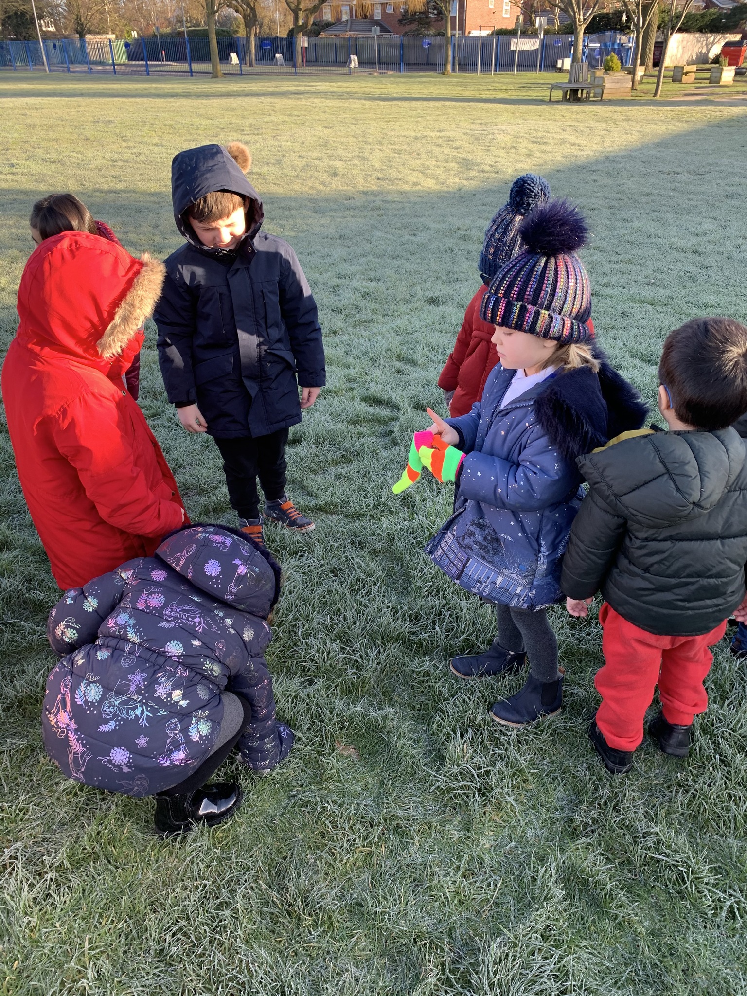 As we welcomed our Nursery children back this week, the weather was just right for our planned activities!! We learned how frost was formed and looked at pictures of the pretty patterns it makes! We were able to go outside on the grass and explore the frost for ourselves! The children thought it was cold, spikey and wet. The children discovered that they could make footprints in it too! Back in the classroom, the children explored blocks of ice in the water and were able to see how and what was making the ice melt!
