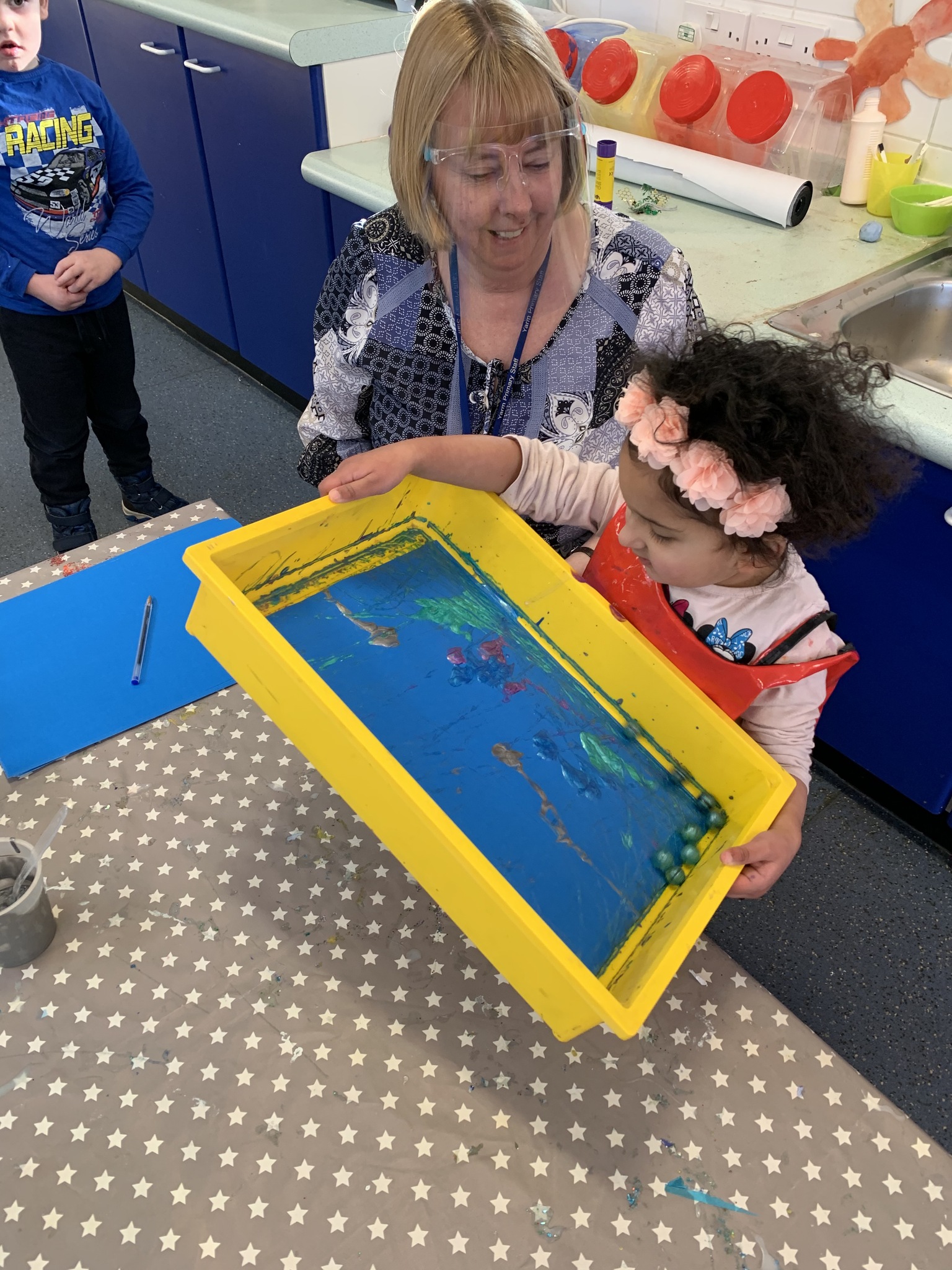 We also looked at pictures of the Northern lights and the children did a really good job of trying to recreate them with marbles and paint which was really fun!