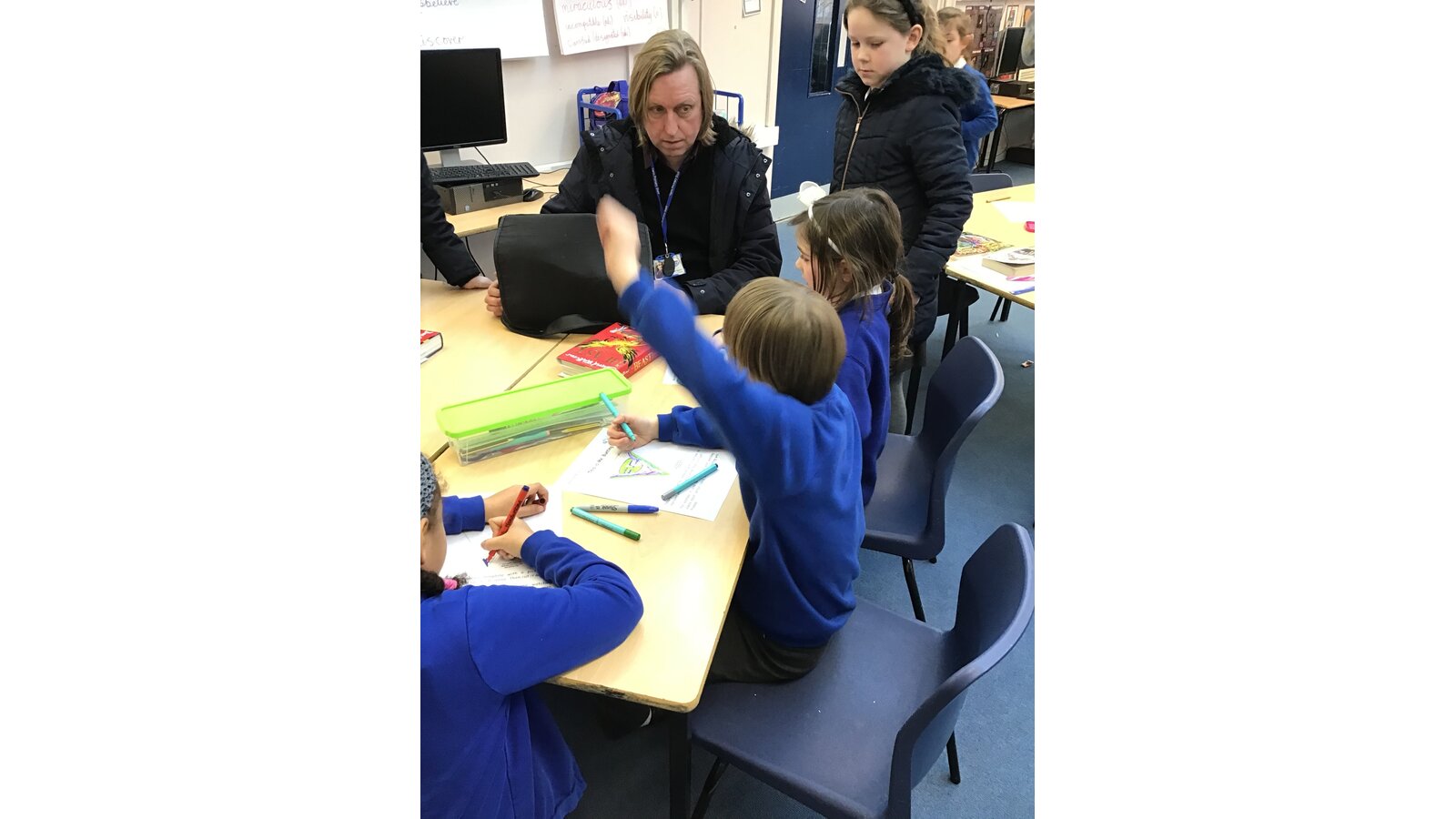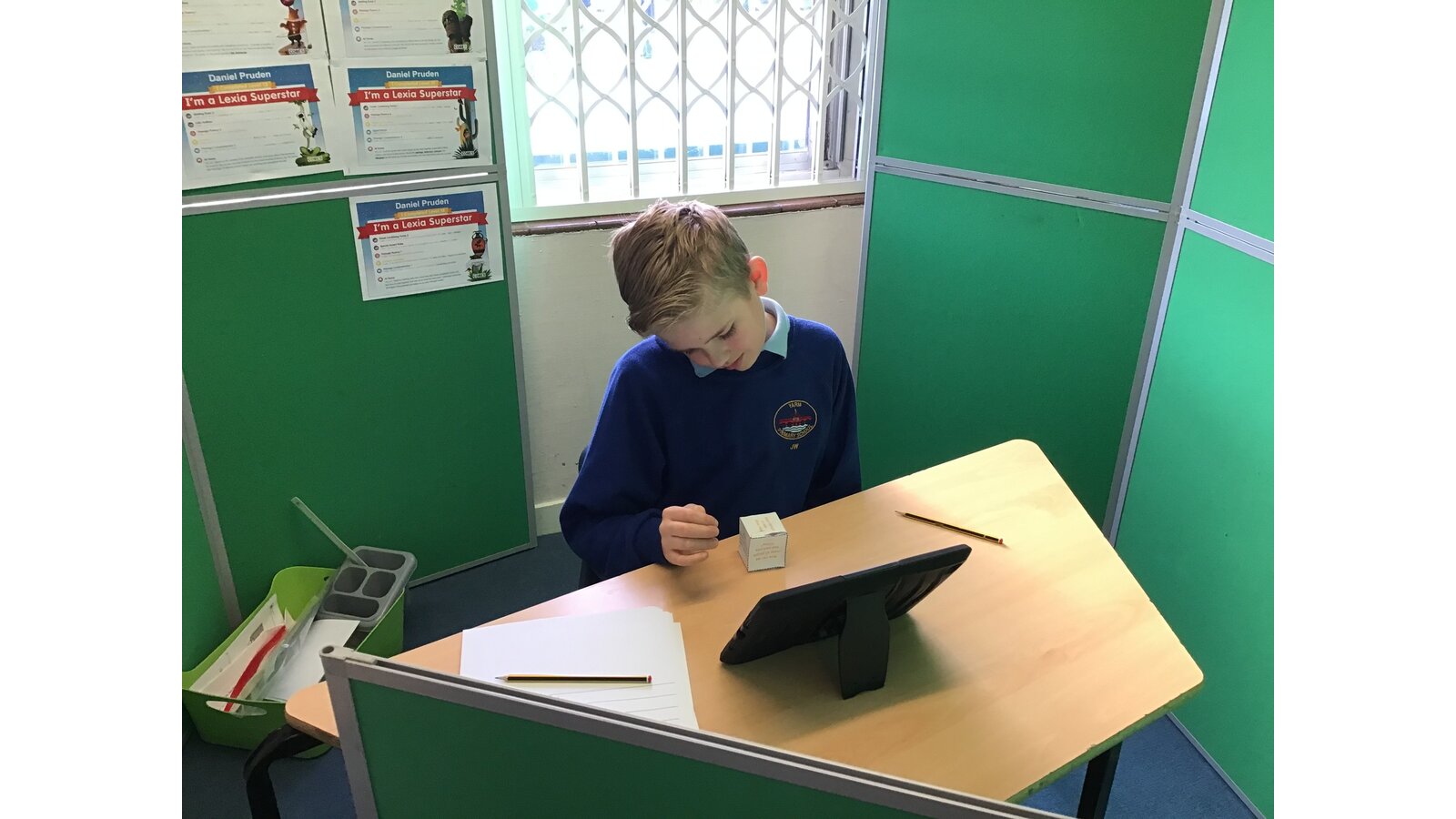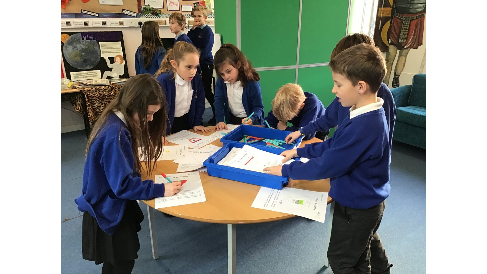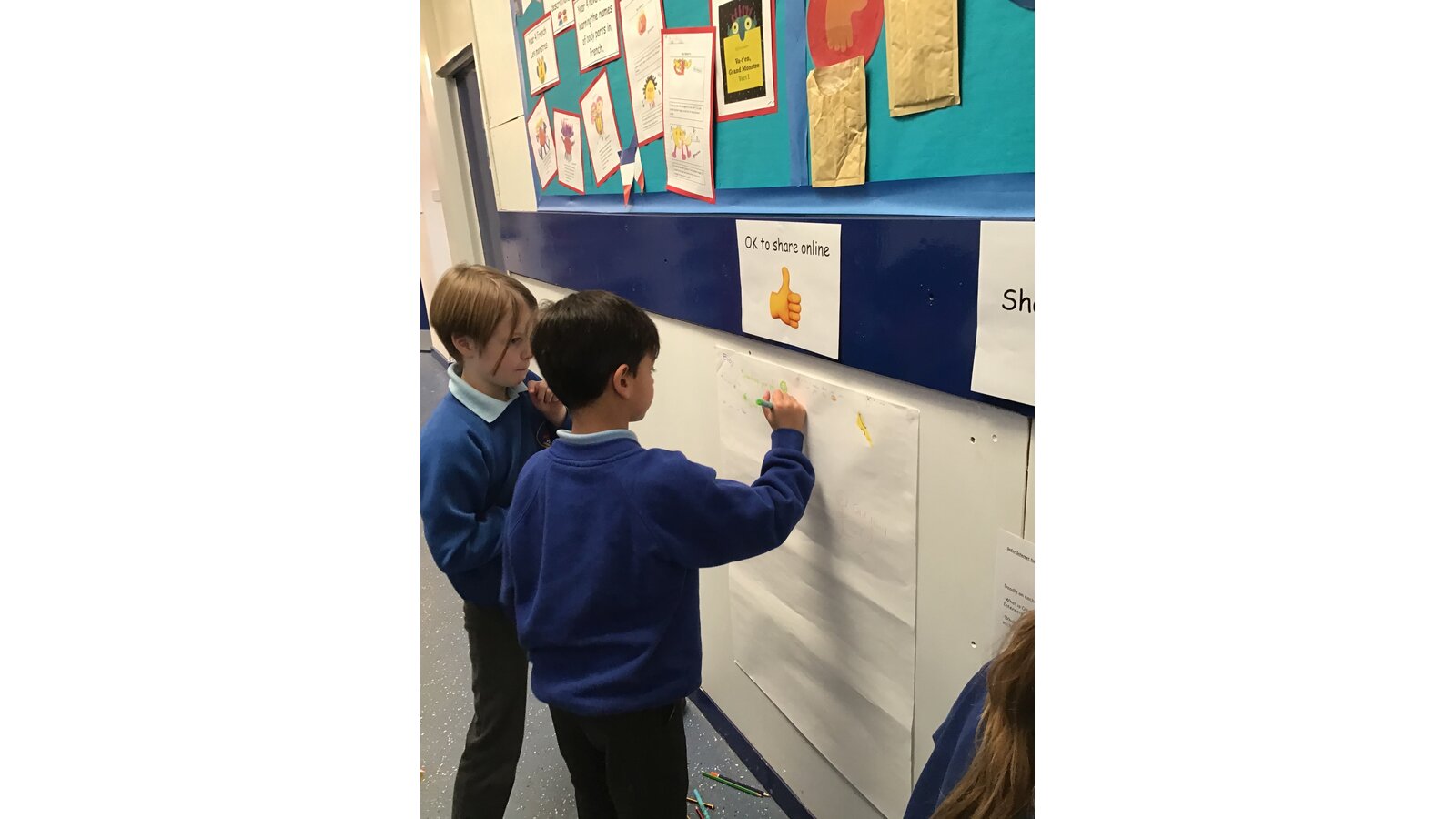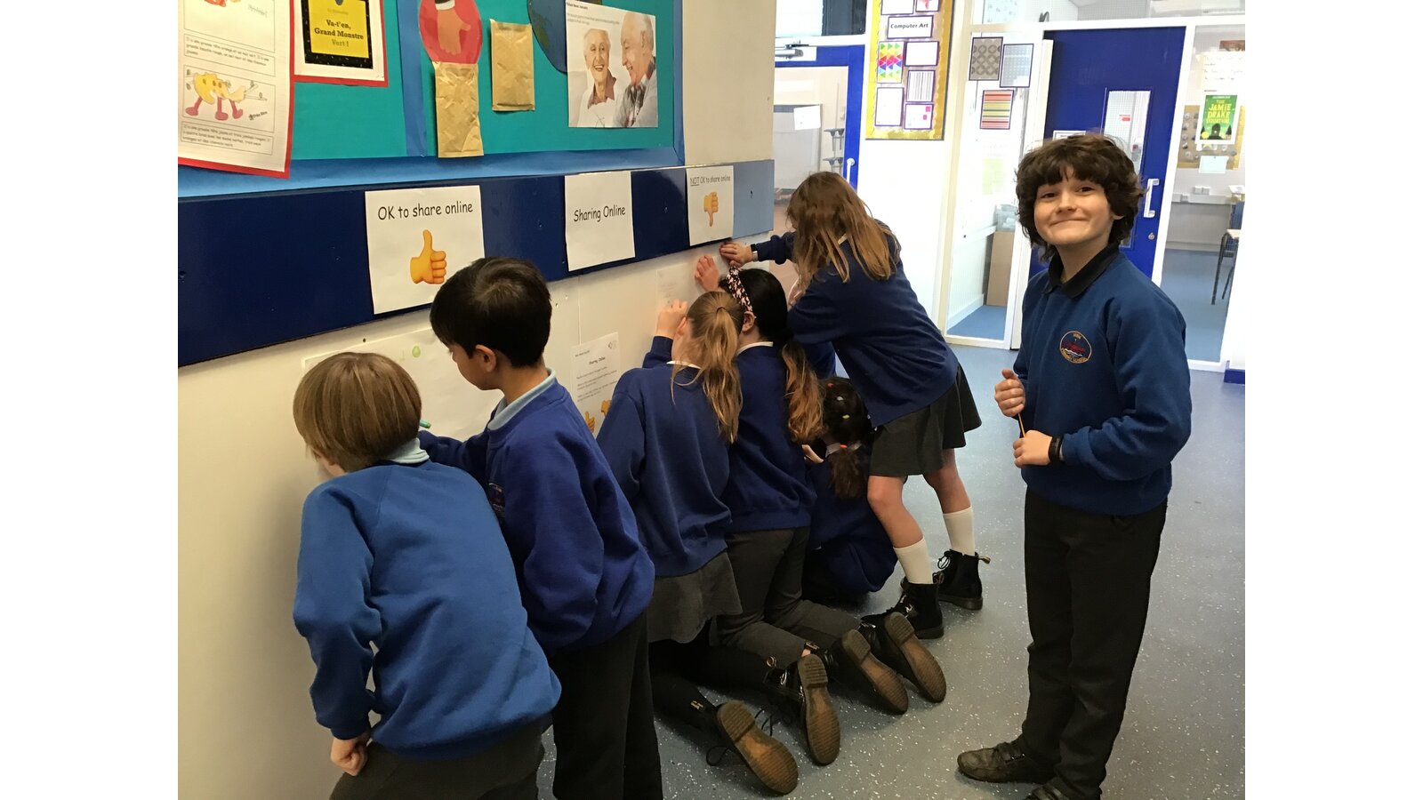 There was plenty going at break times too as Mr Jefferies hosted a carousel of activities in his classroom. Children had the chance to access the 'Video Diary Room' where they rolled a cube and filmed themselves answering a question related to online identity (all in private of course!) They also had the opportunity to contribute a doodle to the 'Sharing Online' wall for things which are OK to share online and things which are not OK.