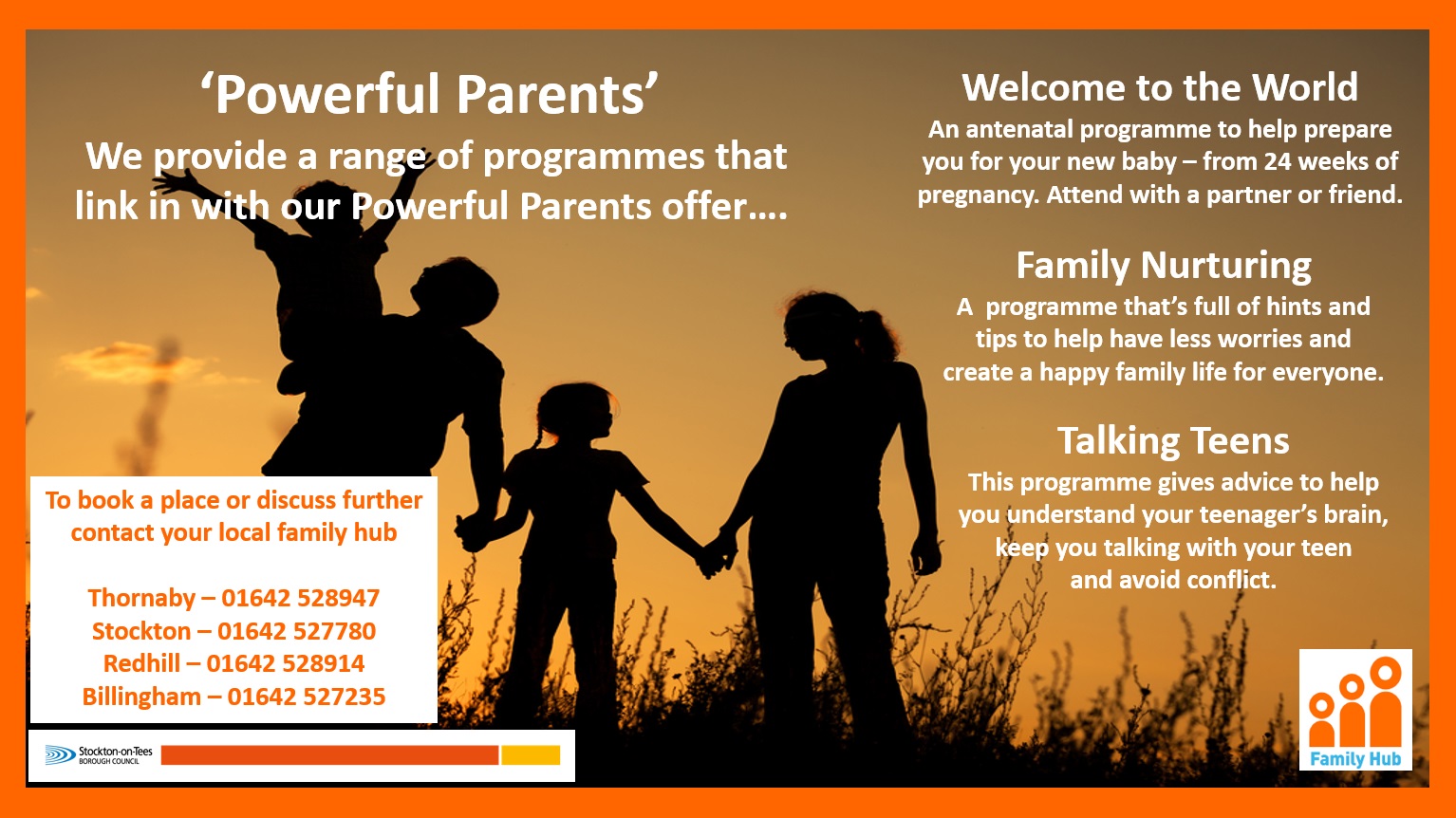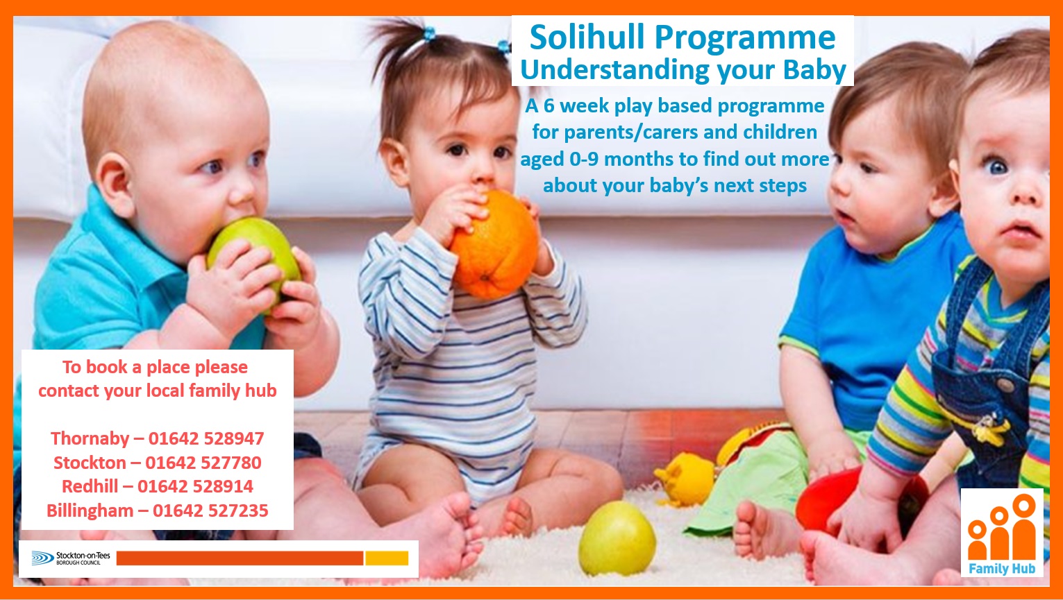 22 March 2021 There are lots of different things available through the Family Hub. Please see the information below: Family Hub posters Baby massage 279 KB Baby yoga 297 KB Corporate Henry 248 KB General Family Hub 263 KB Home safety and first aid 265 KB Mindful moments 339 KB Powerful parents offer 341 KB Relax Kids 299 KB Sleep 313 KB Solihull 347 KB Toilet training 271 KB